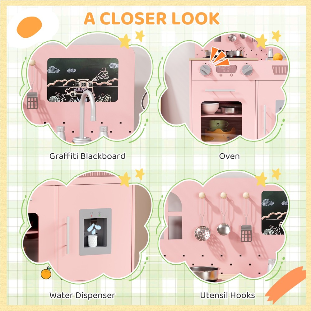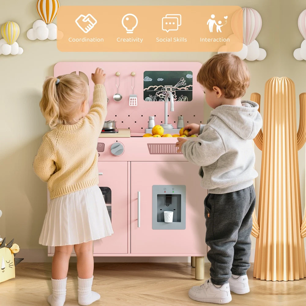 $ 24.55Kids Pretend Play Kitchen Set, Wooden Kitchen Playset with Real Lights & Sounds