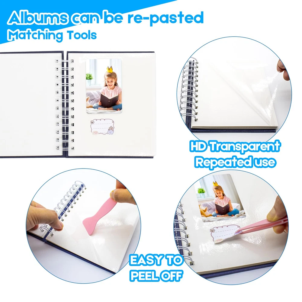 Photo Album Self Adhesive – the perfect way to document your stories and growth. Capture your daily journey without the need for extensive writing - let the photos speak for themselves. Whether it's showcasing your day-to-day life or preserving memorable moments, this self-adhesive album is a convenient and creative solution. Don't forget to pack this DIY album on your travels and transform it into a travel journal. Imagine the joy of flipping through pages filled with memories, reliving the excitement of your adventures. A well-curated photo album not only tells a story but also reflects the essence of a fun-loving and sentimental individual. By personalizing this album with your unique experiences, you can create a visual timeline, providing a sense of accomplishment. The Photo Album Self Adhesive is more than just a collection of pictures – it's a tangible representation of your journey, growth, and cherished memories. Key Features: - Easy to use self-adhesive design - Perfect for daily documentation and travel memories - A creative and fulfilling way to destress and reflect - Ideal for individuals wanting to curate a colorful and meaningful photo collection Embrace the art of storytelling with the Photo Album Self Adhesive – because every picture tells a story. Self-adhesive design: Our Photo Album Self Adhesive eliminates the need for photo corner stickers. The high-quality adhesive protects your photos and text from fading, ensuring long-lasting preservation without the risk of damage from air oxidation. Personalized design: Design a unique album by applying your favorite photo stickers to the cover. This customizable feature allows you to showcase your special moments in a truly elegant and personalized way. The DIY photo album is set with blank places, this blank places is set for you to record the photos’ information. Convenient spiral binding: The 360-degree rotating spiral binding offers easy opening and closing, enhancing the overall elegance of the album while providing a user-friendly experience. Versatile usage: Perfect for travel logs, wedding albums, baby growth records, and as an ideal gift for occasions like Valentine's Day, Christmas, anniversaries, Mother's Day, Thanksgiving, birthdays, and more. Universal compatibility: Our scrapbook can hold 3x5 inches, 4x6 inches photos, as well as ESOXOFFORE Kids Instant Camera Print Paper. The reusable pages allow you to arrange and protect your precious memories effortlessly. CAUTION: This product contains small parts such as (pen cover )that may cause suffocation if swallowed by children.