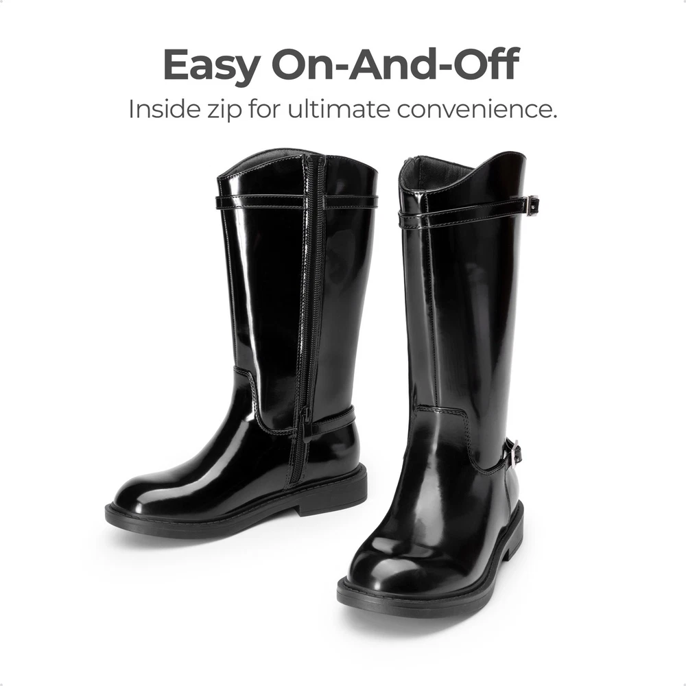 About this item Style for Every Outfit: With a classic round toe design and stylish buckle accents, these girls’ boots are ideal for finishing any outfit from jeans to skirts to dresses. Walk Comfortably: Let her walk in comfort and with ease. Built with a lightweight outsole with non-slip traction, these boots for girls ensure light, secure steps. All-Day Cushioning: Made with a latex-cushioned insole, every step she takes in these black knee-high boots will be easy and comfortable. Easy Side Zipper: Zip up and go in a flash! These girls’ riding boots are quick to wear and remove with a convenient side zipper your little girl can easily handle. Dress Up Or Down: These girls’ black boots are suitable for a variety of occasions, from everyday styling to special events like parties and horseback riding. Payment Shipping Return Contact us Feedback Payment 1.Payment must be received within 7 business days of auction closing. 2.We ship to your eBay or Paypal address. Please make sure your eBay and Paypal address is correct before you pay. Shipping 1. We try our best to ship out same day for payment cleared before 5.00 PM (Pacific Time) 2. Order placed on weekend or holiday will be shipped on Monday or next working day. Return 1.We offer 30 days return policy. Please contact us within 30 days from the date you receive your order if you have any issues with the product and want to return. 2.All items must be returned in the original packaging and you must provide us with the tracking shipping number, specific reason for the return, and your eBay ID. 3.We will refund you FULL WINNING BID AMOUNT, upon receipt of the item in its original condition and packaging with all components and accessories included, AFTER BOTH Buyer and Seller cancel the eBay transaction. Or, you can choose to get a replacement Contact us All communication is done through EBAY MESSAGES ONLY. If any question, please feel free to contact us via "Ask seller a question" or "Contact Seller",We try our best to reply to your emails as soon as possible, due to high volume of daily incoming emails and time zone difference, we may not be able to reply your emails immediately. Please allow 1-2 business days for us to response. Feedback When you receive the item and satisfied with the product, please leave us positive feedback. If for any reason you are not satisfied with your purchase from us, please contact so we can get to work and resolve this issue for you. Please don't leave neutral or negative feedback without giving us an opportunity to try and make it right. Our goal is to ensure a happy shopping experience with us. Your Positive feedback is very much appreciated! On Aug 17, 2025 at 23:24:55 PDT, seller added the following information: On Sep 15, 2025 at 20:24:40 PDT, seller added the following information: