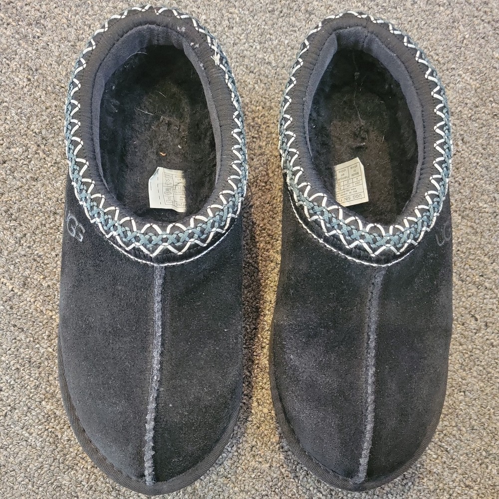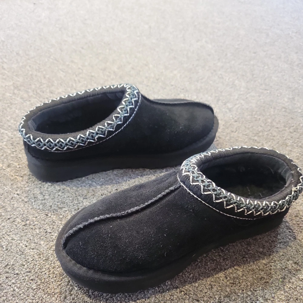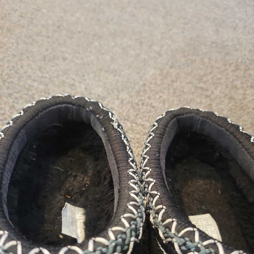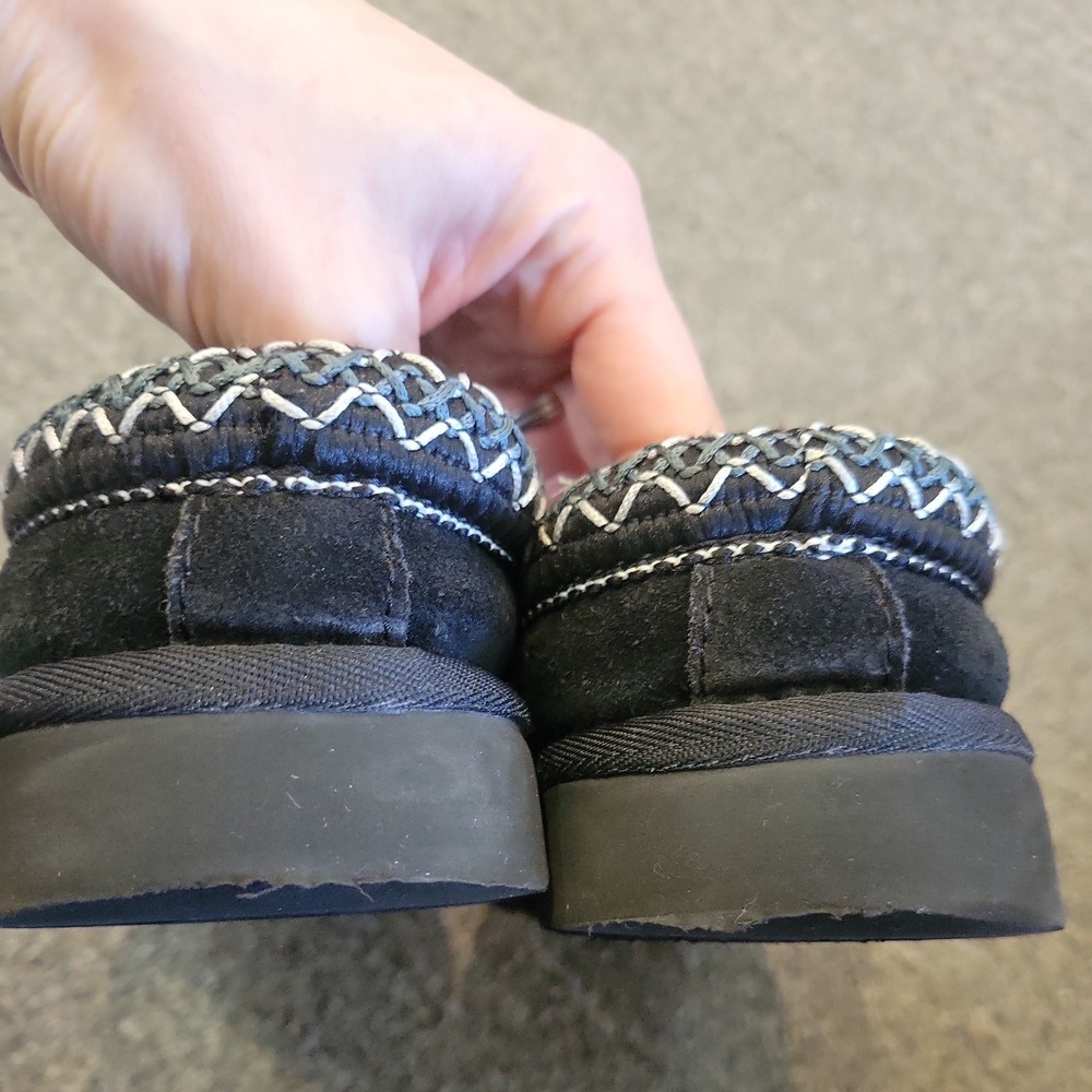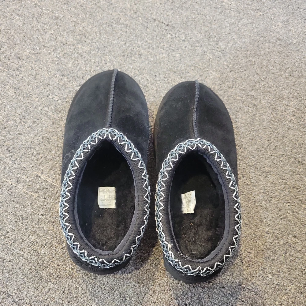 The product is a pair of Kids Tasman uggs in size 4 (EU size 35) and black color. These slip-on UGG Tasman shoes are designed for girls and are perfect for casual occasions. The style is a classic slip-on design, making them easy and comfortable to wear. With the brand's reputation for quality and the stylish black color, these UGGs are a stylish choice for young girls looking for a cozy and fashionable footwear option.