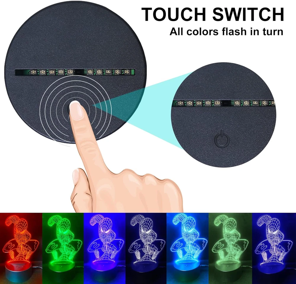 Lighting Perfect Gifts:kids Toys 3D Night Light Lighting,Dimmable LED Nightlight Led Light Smart Touch Dimmer Lights 7 Color Changing, It is great cool toys gift for boys & girls Christmas Easter Thanksgiving Day Gifts for Kids valentines day gifts decor. 3D Visual Effect:The night lights are made with 3d technology to create a gorgeous optical gorgeous3d illusion with a realistic 3d kids Toys shape design, which is novelty and charming. Perfect Gifts for Boys Girls and Baby, Perfect decor lamp for your home, bedroom, child room, living room and any party. Eco-friendly & Safety:The 3d toy lamp for kids is made from Safe approved eco-friendly material, safe and harmless to the human body. Dinosaur Toys 3D Night Light comes with soft, non-flicker light, The brightness can be adjusted steplessly by touch, Perfect for sleep. It is a very humanized and practical night lights Suitable for children's room, living room, bedroom, office, outdoor etc. Night Light for kids: Dimmable LED Nightlight Smart Touch Dimmer Lights 7 Color Changing,Red, Green, Blue, Yellow, Cyan, Pink, White, Color changing,suitable for girls boys kids room, 1 2 3 4 5 6 7 8 9 10 11 12 Year Old Boy or Girl Gifts. After-sales:make sure you are 100% satisfied. we are committed 30-day money back guarantee. Product Description