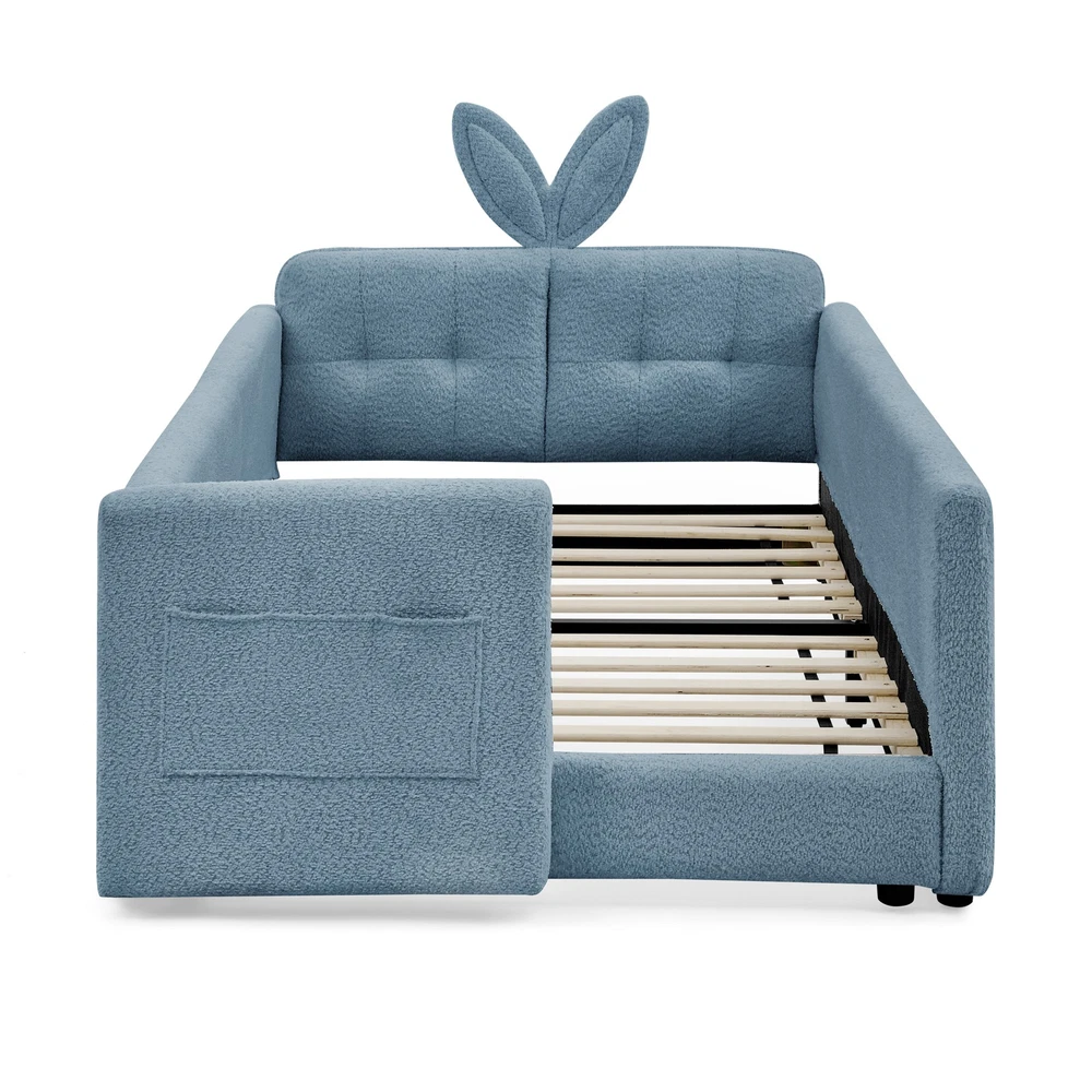 Kids Wooden Platform Bed with Rabbit Design - Single Size Upholstered Bed for Children