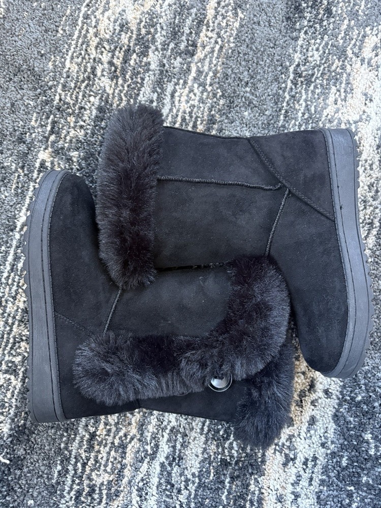 STOP Letting Your Child Have Cold Feet: Claim These "Cloud-Like" Winter Boots Before the Next Freeze Why settle for thin, flimsy sneakers when your little one can step into a plush sanctuary of thick faux fur? Let’s be honest: Finding kids' boots that are actually warm and stylish is a parent’s constant struggle. These are the solution. I’ve analyzed the photos, and here is exactly why these are the smartest buy for your child’s winter wardrobe: The "Magnetic" Features: • The "Arctic Shield" Lining: These boots are packed with thick, midnight black faux fur that creates a thermal barrier, keeping toes toasty even on the walk to the bus stop. • Signature "Snowflake" Traction: Look at the soles—they feature a deep-treaded rubber pattern with integrated snowflakes. This isn't just a cute design; it’s engineered to help prevent slips and falls on icy sidewalks. • Kid-Friendly "No-Lace" Design: These are a Size 3 with a wide opening and a stylish side-button detail, making them incredibly easy for a child to pull on and off themselves. • Durable Suede Aesthetic: The rich black exterior maintains a high-end look while being tough enough to handle daily play. "The Reason Why" This is a Total Steal I believe kids' gear should be high-quality without the high-end price tag. These Size 3 boots are in fantastic condition—the tread on the bottom is crisp and shows almost no wear, meaning they have a full winter (and more) of life left in them. Why pay full retail for a brand name when you can get the same warmth and safety for a fraction of the cost?. The "Parent-to-Parent" Guarantee What you see in these high-resolution photos is exactly what you get. No hidden damage, no mystery stains, and most importantly—no worn-down heels.