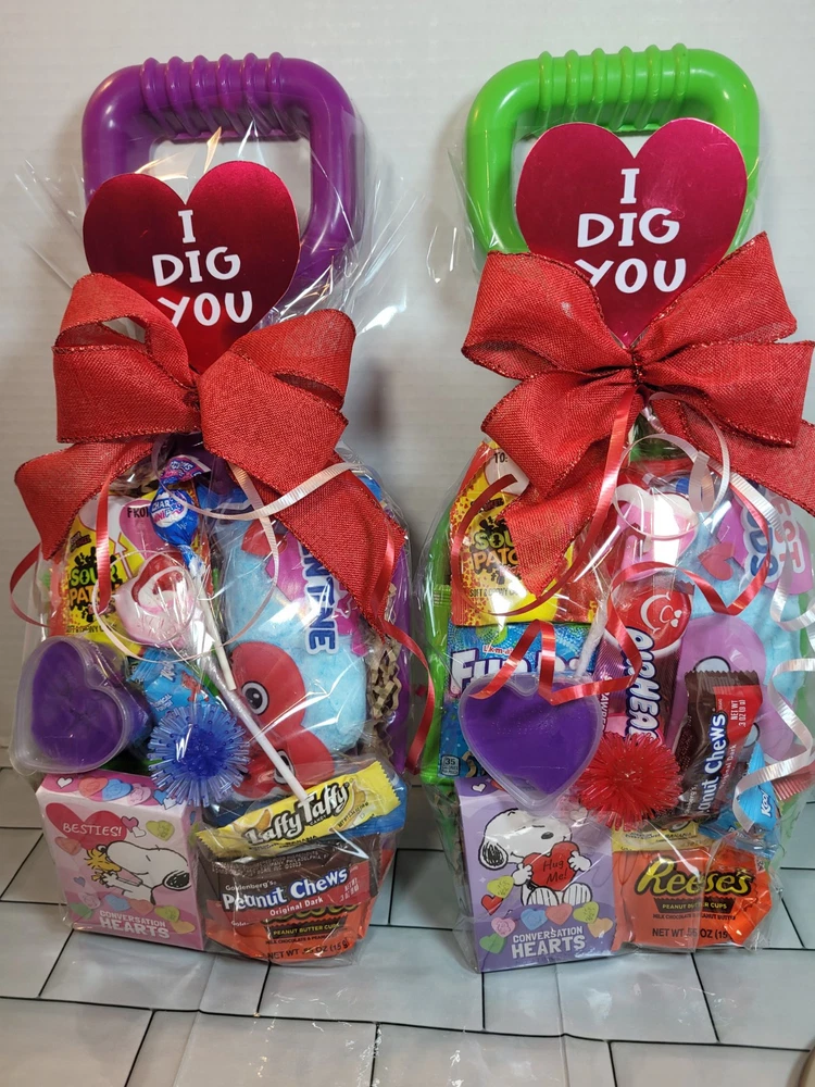 The gisnt Valentine's shovel is designed for kids, suitable for both boys and girls. It contains items appropriate for Valentine's Day with various types of candy. It is a thoughtful gift idea for kids to celebrate love and friendship during Valentine's Day.