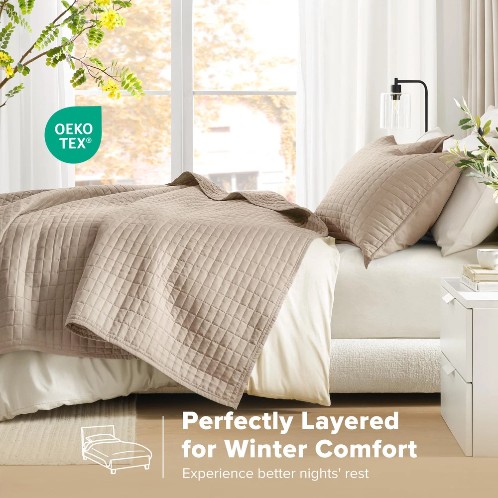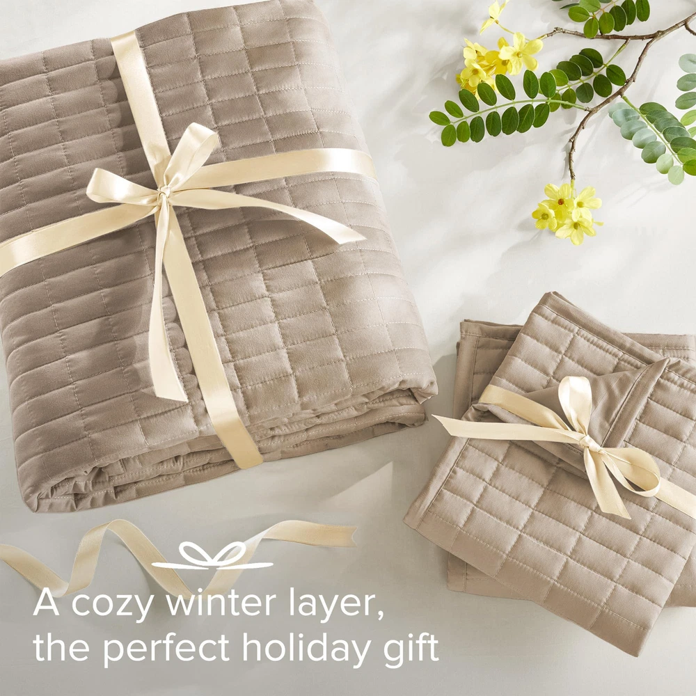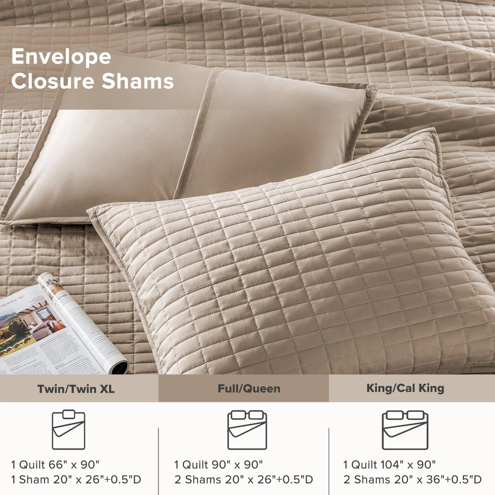 KIENNA QUILT MINI SET Revel in the comfort while you have a good night’s sleep with this cozy quilt mini set from . The Kienna quilt mini set features stitched quilt pattern that brings in styles and comfort to your bedroom decor. The quilt mini set comes with 1 quilt and 2 shams that match the stitched patterns on the quilt. The quilt measures 90(W)x90(L) inches to fit a Full/Queen size bed. The shams measure 20(W)x26(L) inches each. SERVICE If you don't absolutely love this product, return it within 30 days for a full refund. We'll work with you to resolve any issue and ensure that you're satisfied with your experience. KIENNA QUILT MINI SET Revel in the comfort while you have a good night’s sleep with this COZY QUILT set from . The Kienna quilt mini set features sophisticated casual design of stitched quilt pattern that brings in styles and comfort to your bedroom decor. Naturally LIGHTWEIGHT COVER PERFECT FOR SUMMER use or layer it on for cold weather. Super soft microfiber stitched in a mutilayered technique to create a lightweight feel Set includes: 1 Quilt:90"W x 90"L, 2 Standard Shams:20"W x 26"L Care Instruction: For your convenience it's machine washable. Do not use bleach. Commercial size washer and dryer is recommended for best result.