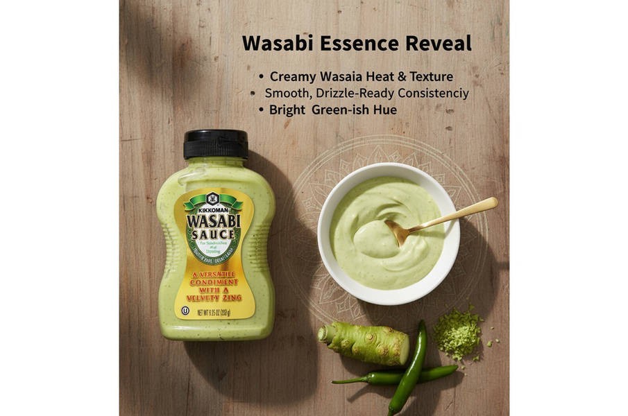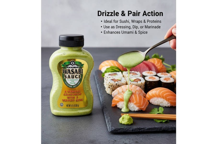 New Kikkoman Wasabi Sauce adds a little spice and a lot of creamy texture to everyday foods. Turn up the heat on vegetables and sandwiches, put more zing in steaks, burgers, chicken and fish, or add fire to dips and salad dressings. Pasteurized and produced in the USA, Kikkoman Wasabi Sauce is made to the highest standards of quality that consumers have come to expect from Kikkoman