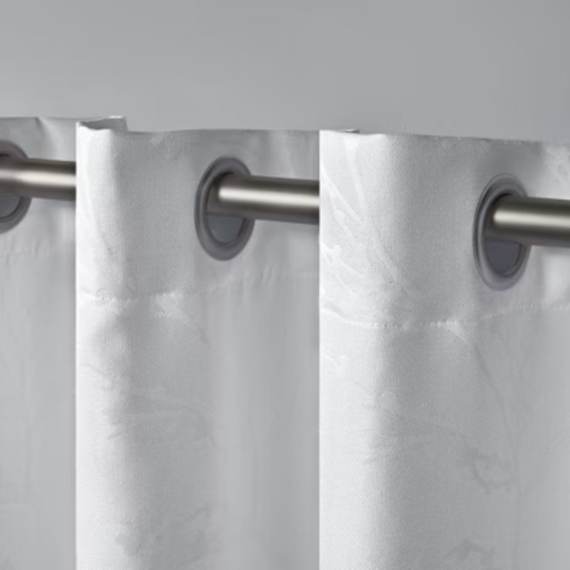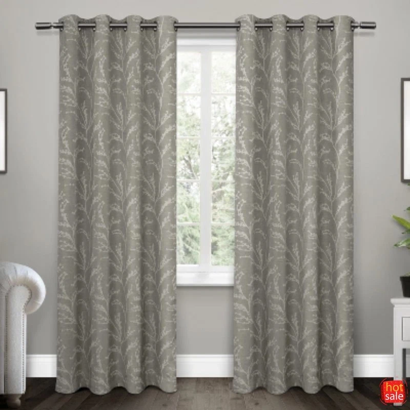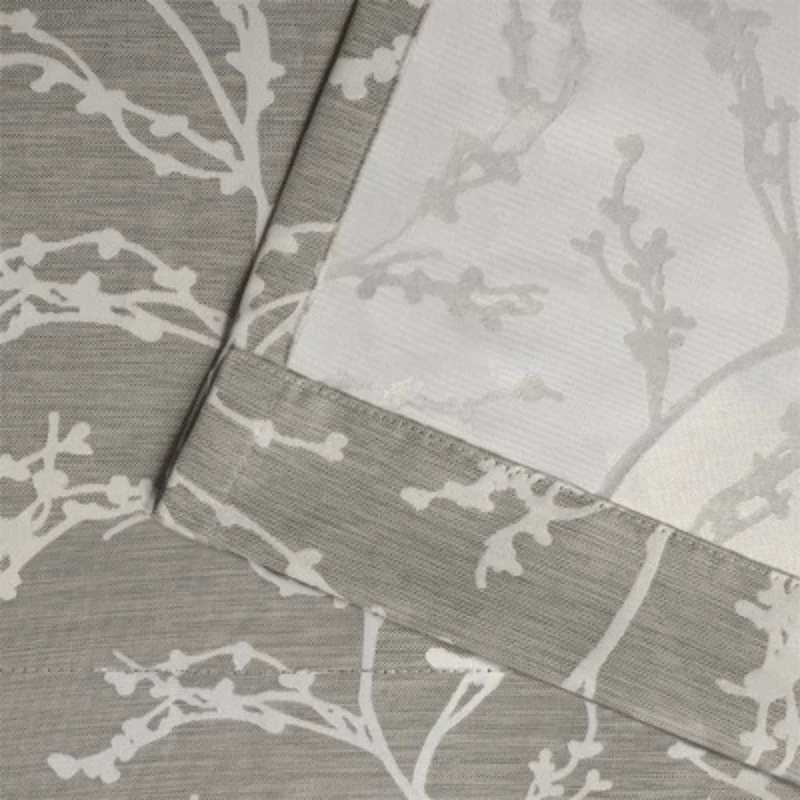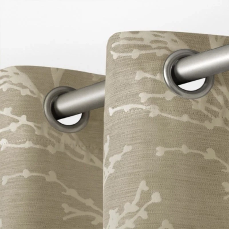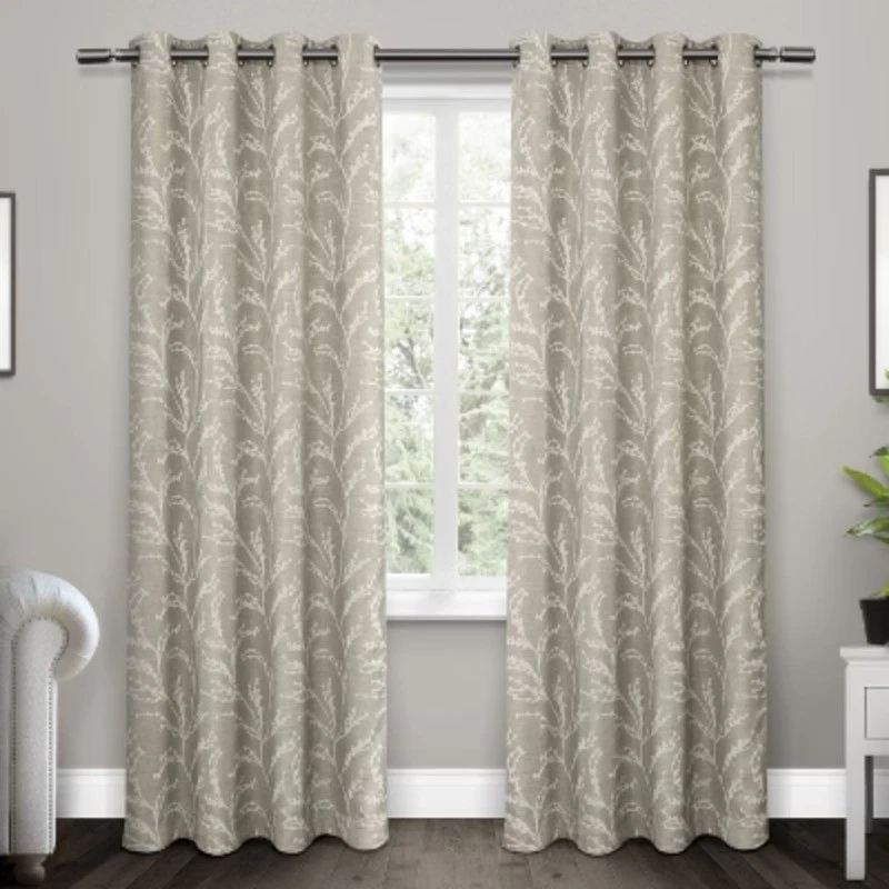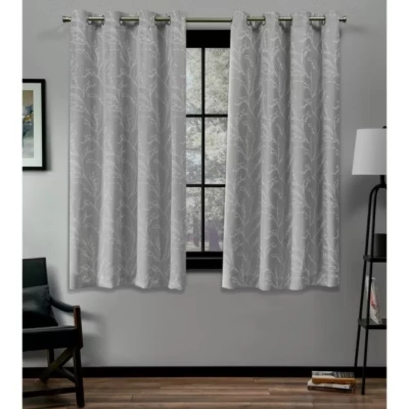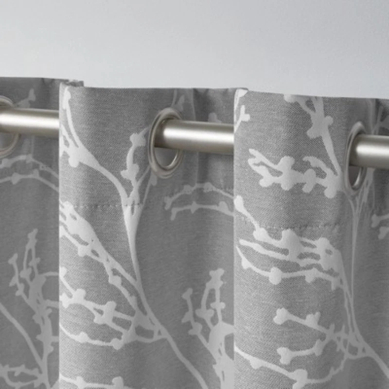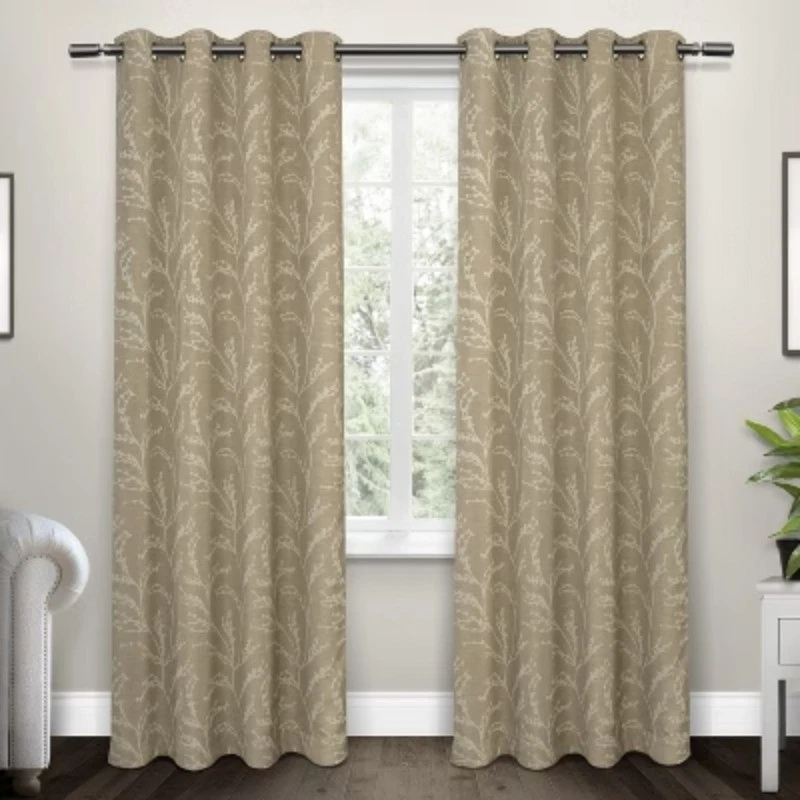 Description Kilberry window curtain panels provide an elegant, natural look to any room in your home. The natural branch motif design is printed on a lush polyester fabric that has the look and feel of linen. These panels are interwoven with blackout insulation provided by Light Block and Thermax technology. Designed to block light and preventing harmful UV rays from reaching your floors and furniture, the panels also prevent cold or heat transfer from the outside, increasing the energy efficiency of your home. The Kilberry panels provide unparalleled privacy and allows you to create darkness any time of day, making them perfect for anyone seeking to block daylight, take a nap, or keep sun glare off your TV. The Kilberry panels are constructed with gorgeous, matte silver grommets and can be hung on your favorite curtain rod up to 1 5/8" diameter, adding yet another touch to the finished look of your window decor. These window curtain panels will drape beautifully from any window that could use that perfect, finishing touch. Our curtain panels are perfect for any living room, bedroom, family room, dining room, bathroom and office space. highlights Kilberry panels offer a natural branch pattern on luxurious thermal insulated fabric Includes two (2) curtain panels 8 matte silver grommets per panel; inside diameter for curtain rod measures 1-5/8" - panel sewn with 4" heading; 3" bottom hem Recommend ordering 2 to 3 times rod width for proper look and fullness Care instructions: Spot clean and/or hand wash window treatment curtains. Use iron on low heat to straighten and remove creases/wrinkles from packaging.