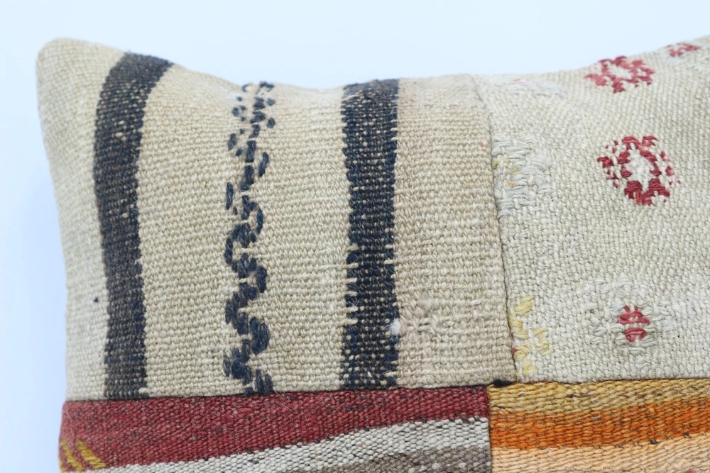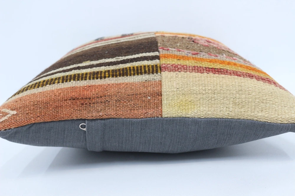 Kilim Pillow Details: All of my beautiful pillow covers or cushion cases are designed and made by me. I am making my throw pillow covers from handmade vintage rugs, Turkish rugs. Therefore, each of my vintage kilim pillowcase is one of kind. These cushions covers are piece of an art. The size of this pillow is 16 x 16 inches or 40 x 40 cm. The front side of this decorative pillow cover, cushion cover is wool on wool vintage kilim rug. The backside of this throw is high quality cotton fabric with a high quality zipper. This listing has 2 option for this handmade pillow. You can choose with insert or without insert. The listing photos is with insert in the pillowcase which is just for demonstration purpose. All of my vintage Turkish rugs have been professionally washed before I cut them as pillow case or cushion case so these kilim covers are 100 posent clean and ready to use. Due to the age and handmade nature of these vintage rugs, there might be imperfections and flaws that are not considered defects. This is a piece of a handmade vintage rug with minor signs of wear consistent with age and use that give it an antique look. You can see the condition of the rug pillow clearly in the detailed photos. I am going to ship your order of decorative pillow as soon as possible. I usually ship in the next day with DHL Express or FedEx which will deliver the kilim pillow, cushion cover just in 3-5 business days. It is my responsible until you receive pillow cover or pillow cover with insert at your door. If the pillow cover or insert get lost or damage during the shipping, I will ship the new kilim pillow cover or pillow insert for free as soon as possible. I take photos of my throw pillows indoor with professional camera which shows the real colors. The photos of these Turkish pillow covers are not altered. Keep in mind the colors of the rug vary slightly in different lights. Please contact to me for additional photos. I take the photos of my vintage rugs outside with daylight to show you the real and natural colors. My photos are not altered. Keep in mind the colors of the rug vary slightly in different lights. Please contact to me for additional photos. SATISFACTION GUARANTEED for your order in my shop. Your SATISFACTION is the most important to me. Please write me if you have any question or if you don't like anything from my pillow covers, cushion covers. If any reason, you are not happy from your Turkish pillow cover, I accept return without any hassle. Please read my shop policies for details. This cushion case or pillow cover can be used as decorative throw pillow, gift pillow, Christmas pillow case, bedding pillow, lumbar pillow, sofa pillow, bohemian pillow, boho pillow. You can find in any kind of Turkish kilim pillow cover in different design such as striped pillow, embroidered pillow, and geometric pillow.