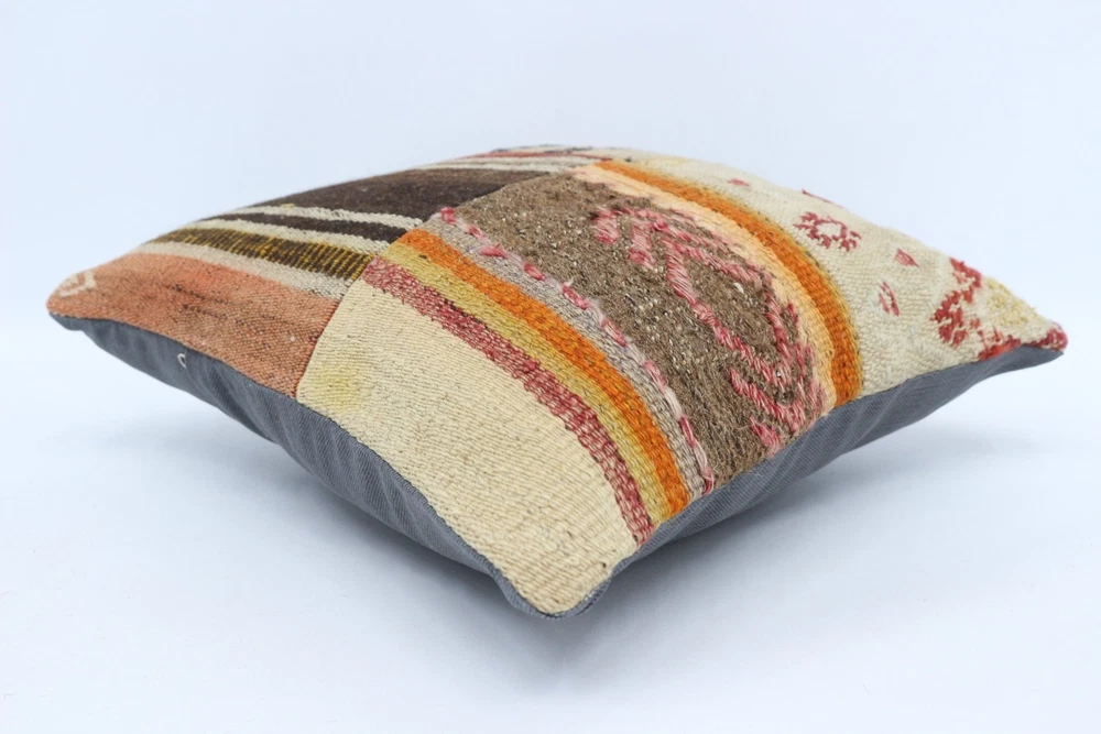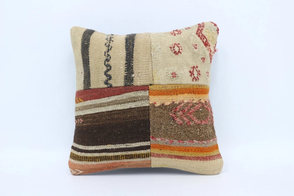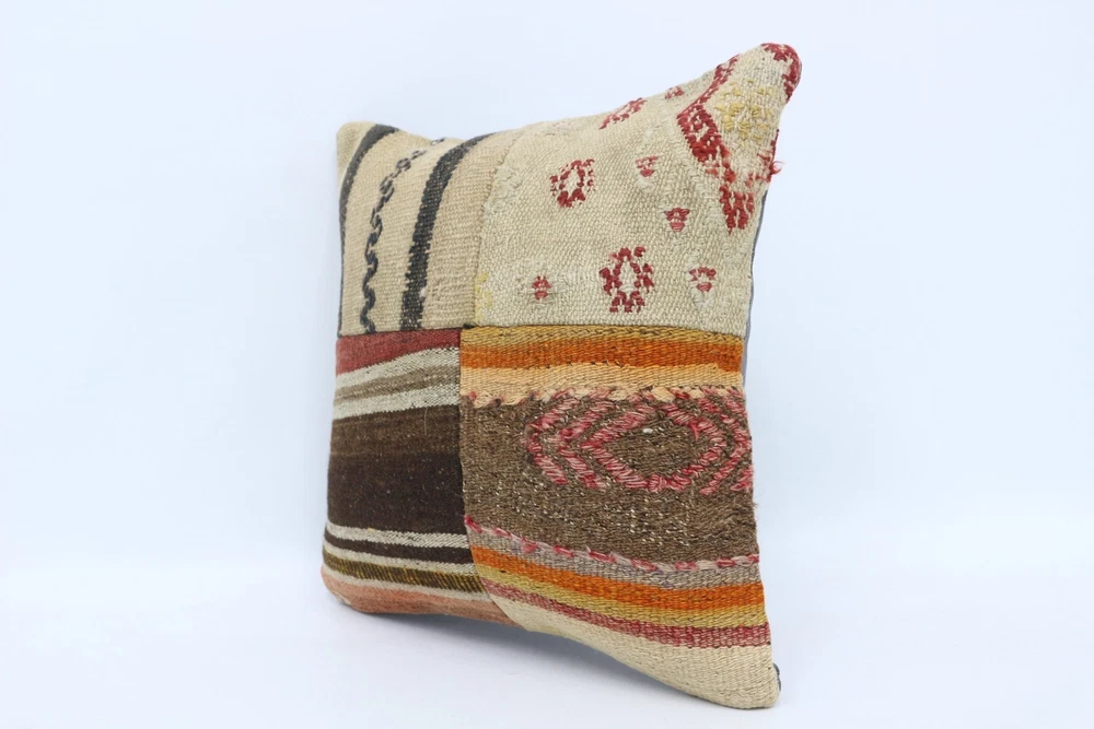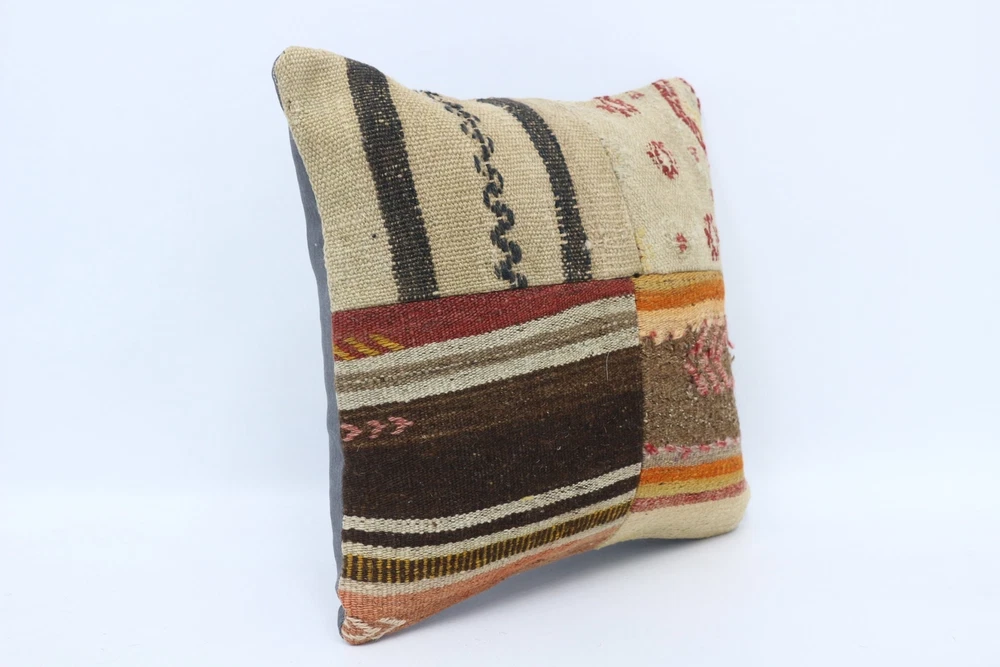 Kilim Pillow, Antique Pillows, 16"x16" Beige Cushion, Turkish Pillow