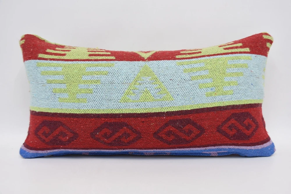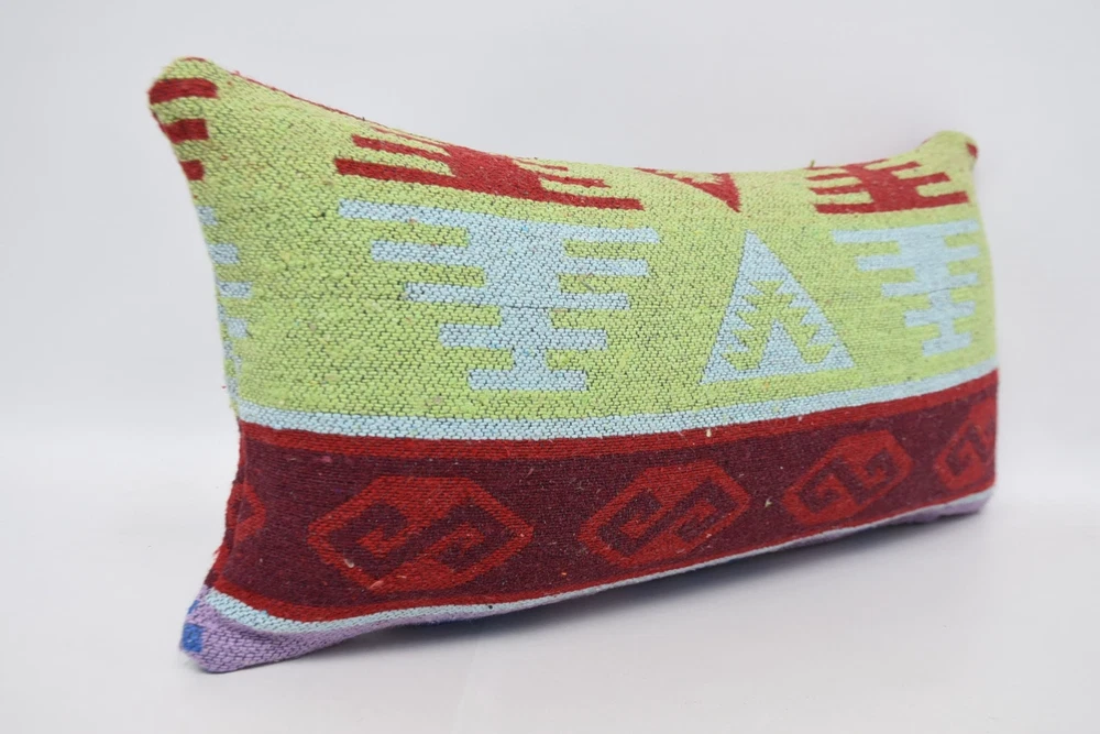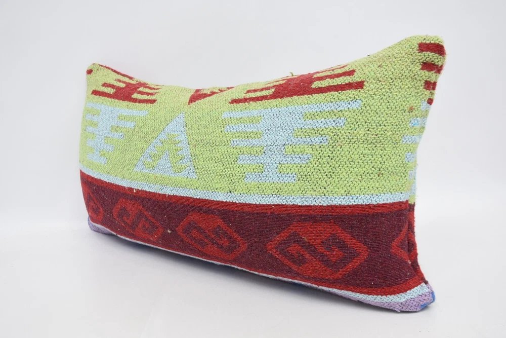 Kilim Pillow Cases, Designer Pillows, 12"x24" Green Pillow, Pillow Covers