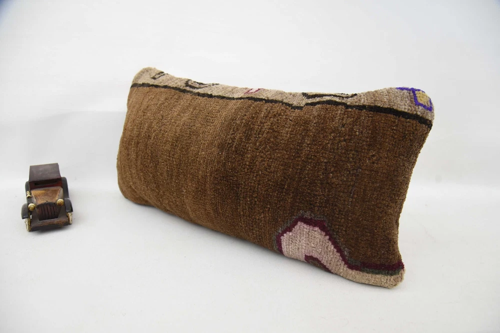 Kilim Pillow Cases, Pillow for Sofa, Art Pillow, 12"x24" Brown Pillow Case