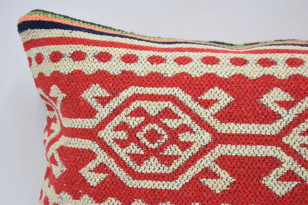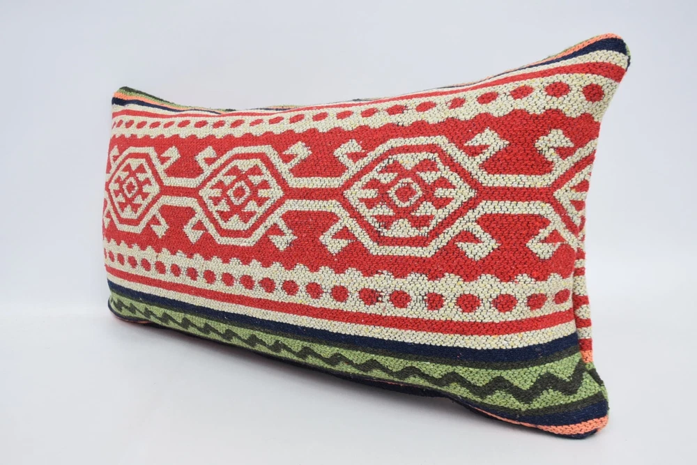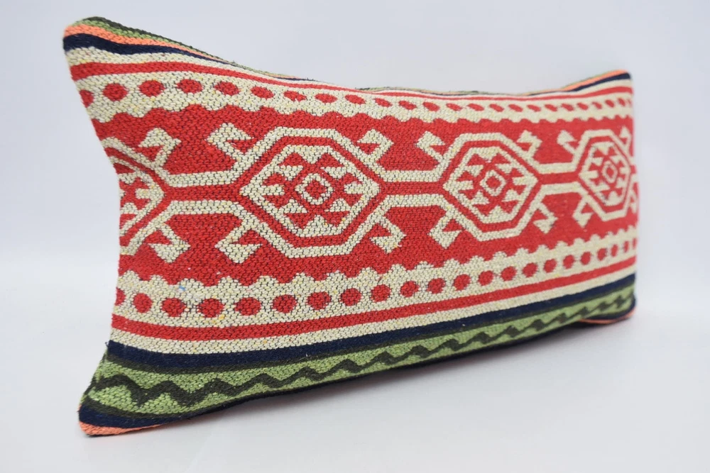 Kilim Pillow Cover, 12"x24" Red Pillow, Kilim Pillow Covers