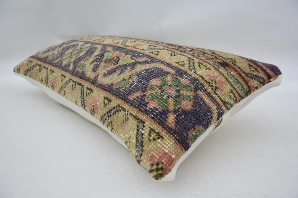 Kilim Pillow Covers, 12"x24" Beige Cushion Case, Turkish Kilim Pillow