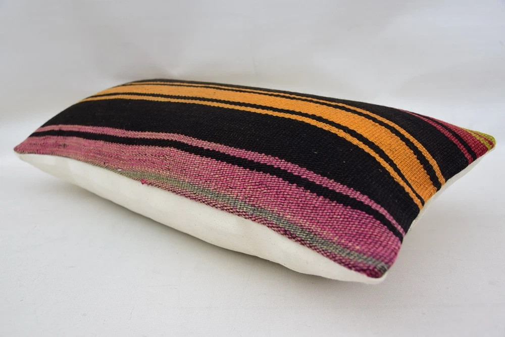 Kilim Pillow Covers, 12"x24" Brown Pillow Covers, Turkish Kilim Pillow