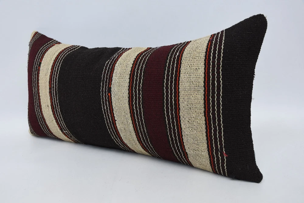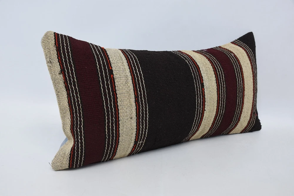Kilim Pillow Covers, Throw Pillow, 12"x24" Brown Pillow Cover