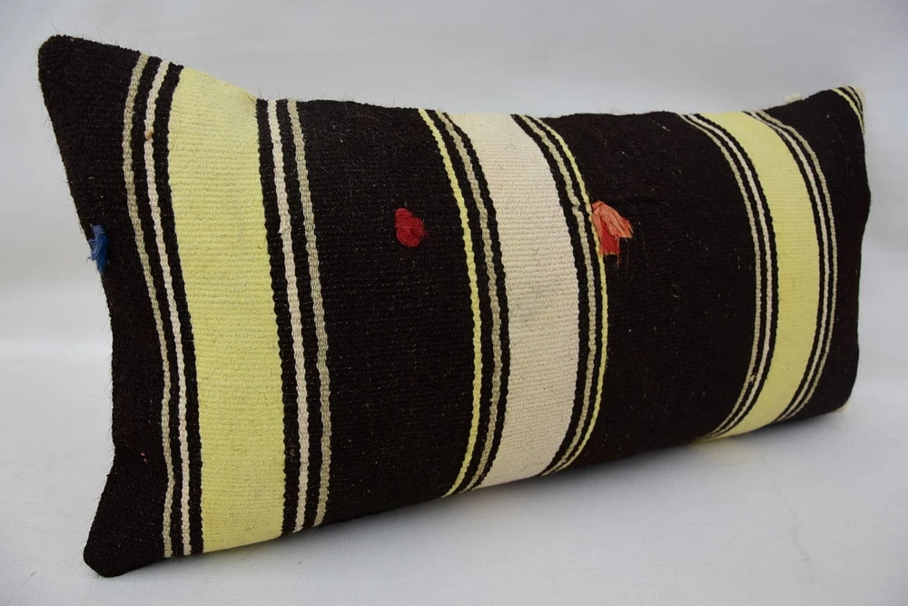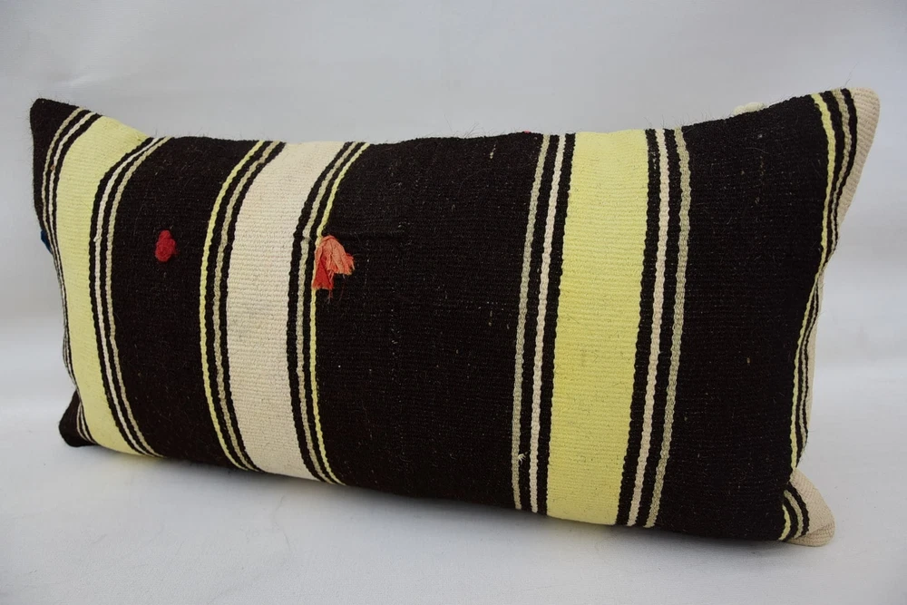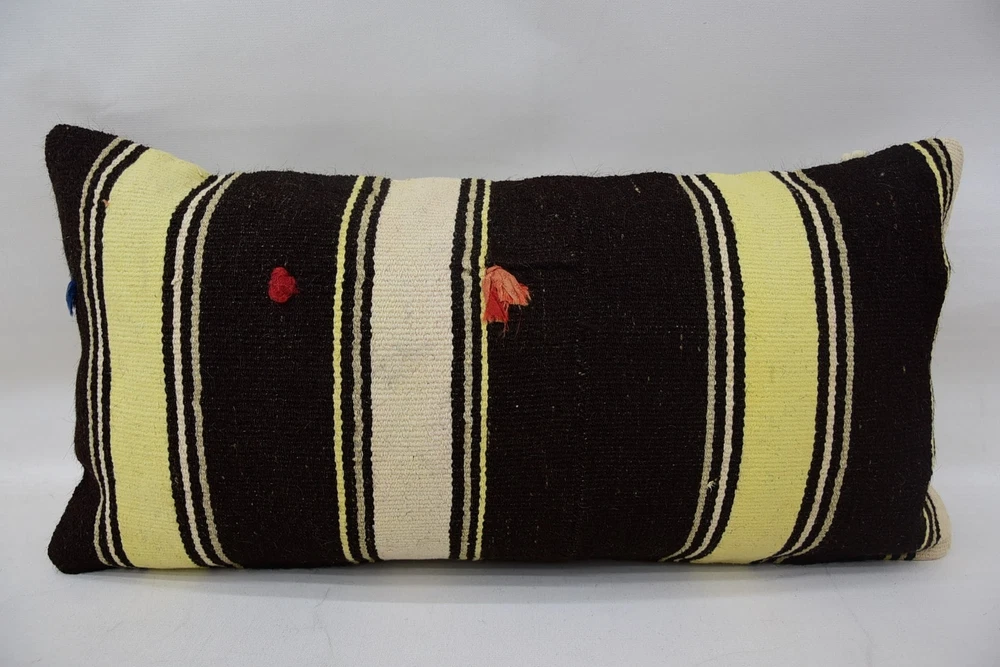 Kilim Pillows, 12"x24" Brown Pillow Case, Pillow Cushion, Kilim Pillow Covers