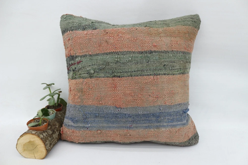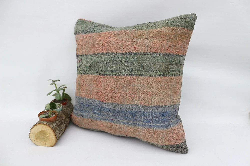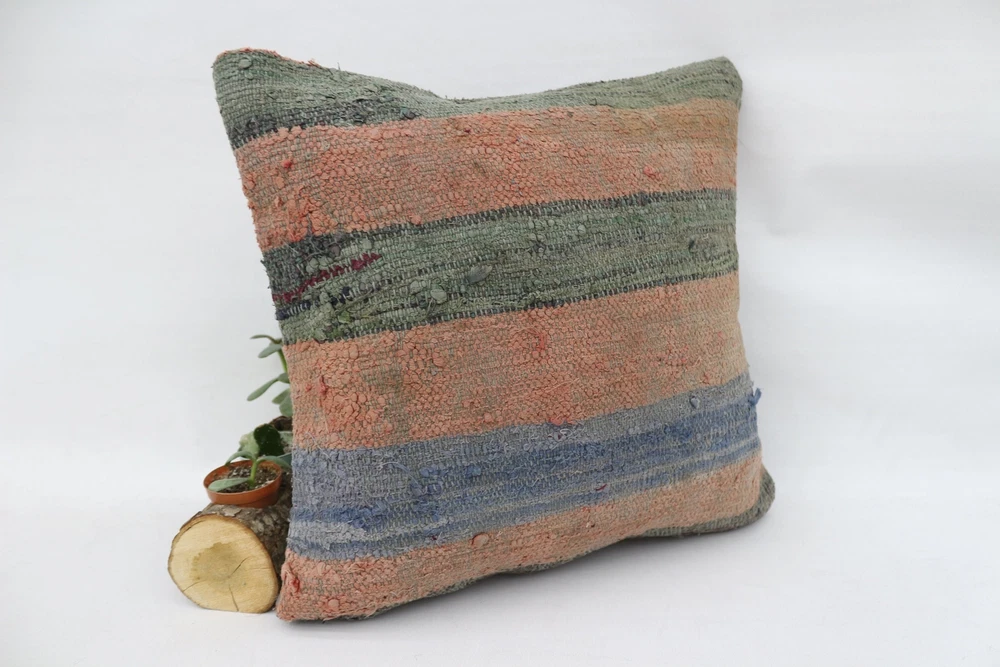 Kilim Pillow Details: All of my beautiful pillow covers or cushion cases are designed and made by me. I am making my throw pillow covers from handmade vintage rugs, Turkish rugs. Therefore, each of my vintage kilim pillowcase is one of kind. These cushions covers are piece of an art. The size of this pillow is 16 x 16 inches or 40 x 40 cm. The front side of this decorative pillow cover, cushion cover is wool on wool vintage kilim rug. The backside of this throw is high quality cotton fabric with a high quality zipper. This listing has 2 option for this handmade pillow. You can choose with insert or without insert. The listing photos is with insert in the pillowcase which is just for demonstration purpose. All of my vintage Turkish rugs have been professionally washed before I cut them as pillow case or cushion case so these kilim covers are 100 posent clean and ready to use. Due to the age and handmade nature of these vintage rugs, there might be imperfections and flaws that are not considered defects. This is a piece of a handmade vintage rug with minor signs of wear consistent with age and use that give it an antique look. You can see the condition of the rug pillow clearly in the detailed photos. I am going to ship your order of decorative pillow as soon as possible. I usually ship in the next day with DHL Express or FedEx which will deliver the kilim pillow, cushion cover just in 3-5 business days. It is my responsible until you receive pillow cover or pillow cover with insert at your door. If the pillow cover or insert get lost or damage during the shipping, I will ship the new kilim pillow cover or pillow insert for free as soon as possible. I take photos of my throw pillows indoor with professional camera which shows the real colors. The photos of these Turkish pillow covers are not altered. Keep in mind the colors of the rug vary slightly in different lights. Please contact to me for additional photos. I take the photos of my vintage rugs outside with daylight to show you the real and natural colors. My photos are not altered. Keep in mind the colors of the rug vary slightly in different lights. Please contact to me for additional photos. SATISFACTION GUARANTEED for your order in my shop. Your SATISFACTION is the most important to me. Please write me if you have any question or if you don't like anything from my pillow covers, cushion covers. If any reason, you are not happy from your Turkish pillow cover, I accept return without any hassle. Please read my shop policies for details. This cushion case or pillow cover can be used as decorative throw pillow, gift pillow, Christmas pillow case, bedding pillow, lumbar pillow, sofa pillow, bohemian pillow, boho pillow. You can find in any kind of Turkish kilim pillow cover in different design such as striped pillow, embroidered pillow, and geometric pillow.