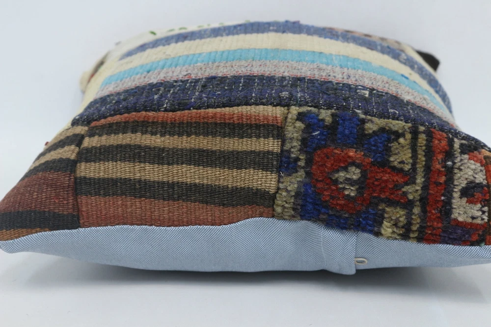 Kilim Pillow Details: All of my beautiful pillow covers or cushion cases are designed and made by me. I am making my throw pillow covers from handmade vintage rugs, Turkish rugs. Therefore, each of my vintage kilim pillowcase is one of kind. These cushions covers are piece of an art. The size of this pillow is 16 x 16 inches or 40 x 40 cm. The front side of this decorative pillow cover, cushion cover is wool on wool vintage kilim rug. The backside of this throw is high quality cotton fabric with a high quality zipper. This listing has 2 option for this handmade pillow. You can choose with insert or without insert. The listing photos is with insert in the pillowcase which is just for demonstration purpose. All of my vintage Turkish rugs have been professionally washed before I cut them as pillow case or cushion case so these kilim covers are 100 posent clean and ready to use. Due to the age and handmade nature of these vintage rugs, there might be imperfections and flaws that are not considered defects. This is a piece of a handmade vintage rug with minor signs of wear consistent with age and use that give it an antique look. You can see the condition of the rug pillow clearly in the detailed photos. I am going to ship your order of decorative pillow as soon as possible. I usually ship in the next day with DHL Express or FedEx which will deliver the kilim pillow, cushion cover just in 3-5 business days. It is my responsible until you receive pillow cover or pillow cover with insert at your door. If the pillow cover or insert get lost or damage during the shipping, I will ship the new kilim pillow cover or pillow insert for free as soon as possible. I take photos of my throw pillows indoor with professional camera which shows the real colors. The photos of these Turkish pillow covers are not altered. Keep in mind the colors of the rug vary slightly in different lights. Please contact to me for additional photos. I take the photos of my vintage rugs outside with daylight to show you the real and natural colors. My photos are not altered. Keep in mind the colors of the rug vary slightly in different lights. Please contact to me for additional photos. SATISFACTION GUARANTEED for your order in my shop. Your SATISFACTION is the most important to me. Please write me if you have any question or if you don't like anything from my pillow covers, cushion covers. If any reason, you are not happy from your Turkish pillow cover, I accept return without any hassle. Please read my shop policies for details. This cushion case or pillow cover can be used as decorative throw pillow, gift pillow, Christmas pillow case, bedding pillow, lumbar pillow, sofa pillow, bohemian pillow, boho pillow. You can find in any kind of Turkish kilim pillow cover in different design such as striped pillow, embroidered pillow, and geometric pillow.