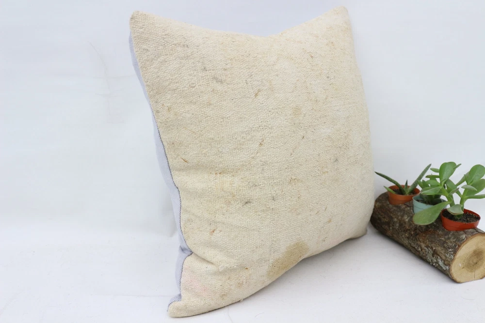 Kilim Pillow Details: All of my beautiful pillow covers or cushion cases are designed and made by me. I am making my throw pillow covers from handmade vintage rugs, Turkish rugs. Therefore, each of my vintage kilim pillowcase is one of kind. These cushions covers are piece of an art. The size of this pillow is 16 x 16 inches or 40 x 40 cm. The front side of this decorative pillow cover, cushion cover is wool on wool vintage kilim rug. The backside of this throw is high quality cotton fabric with a high quality zipper. This listing has 2 option for this handmade pillow. You can choose with insert or without insert. The listing photos is with insert in the pillowcase which is just for demonstration purpose. All of my vintage Turkish rugs have been professionally washed before I cut them as pillow case or cushion case so these kilim covers are 100 posent clean and ready to use. Due to the age and handmade nature of these vintage rugs, there might be imperfections and flaws that are not considered defects. This is a piece of a handmade vintage rug with minor signs of wear consistent with age and use that give it an antique look. You can see the condition of the rug pillow clearly in the detailed photos. I am going to ship your order of decorative pillow as soon as possible. I usually ship in the next day with DHL Express or FedEx which will deliver the kilim pillow, cushion cover just in 3-5 business days. It is my responsible until you receive pillow cover or pillow cover with insert at your door. If the pillow cover or insert get lost or damage during the shipping, I will ship the new kilim pillow cover or pillow insert for free as soon as possible. I take photos of my throw pillows indoor with professional camera which shows the real colors. The photos of these Turkish pillow covers are not altered. Keep in mind the colors of the rug vary slightly in different lights. Please contact to me for additional photos. I take the photos of my vintage rugs outside with daylight to show you the real and natural colors. My photos are not altered. Keep in mind the colors of the rug vary slightly in different lights. Please contact to me for additional photos. SATISFACTION GUARANTEED for your order in my shop. Your SATISFACTION is the most important to me. Please write me if you have any question or if you don't like anything from my pillow covers, cushion covers. If any reason, you are not happy from your Turkish pillow cover, I accept return without any hassle. Please read my shop policies for details. This cushion case or pillow cover can be used as decorative throw pillow, gift pillow, Christmas pillow case, bedding pillow, lumbar pillow, sofa pillow, bohemian pillow, boho pillow. You can find in any kind of Turkish kilim pillow cover in different design such as striped pillow, embroidered pillow, and geometric pillow.
