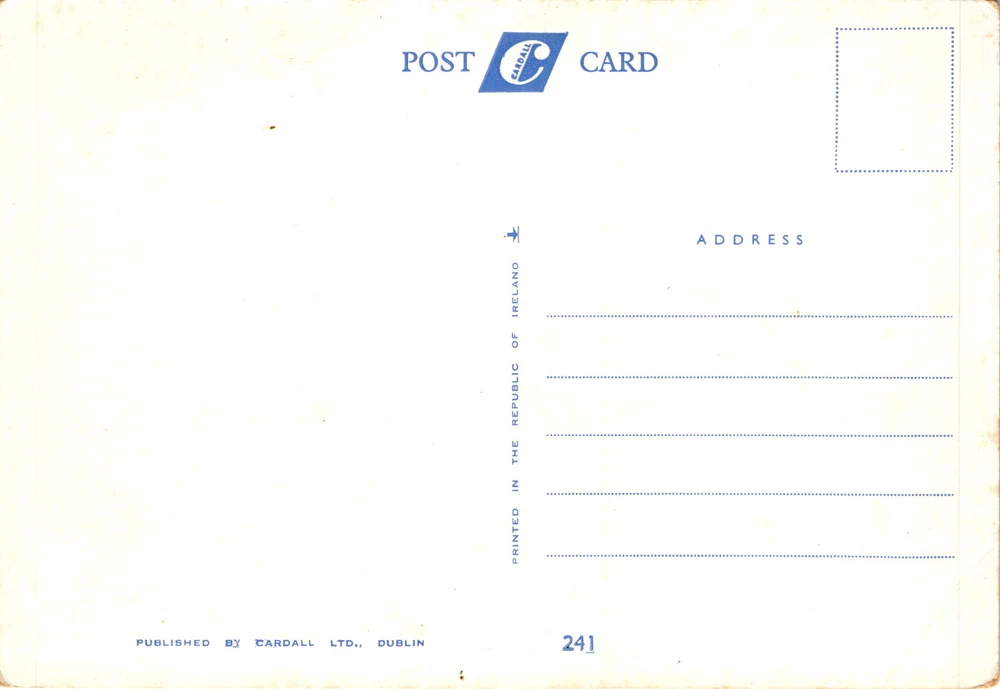 MAKE AN OFFER. THE MORE YOU BUY THE BETTER DEAL I WILL ACCEPT The front of the postcard depicts Irish Jaunting Cars touring the Lakes of Killarney in Ireland. The postcard was published by Cardall Ltd. in Dublin. The back of the postcard includes information about the publisher and the address.