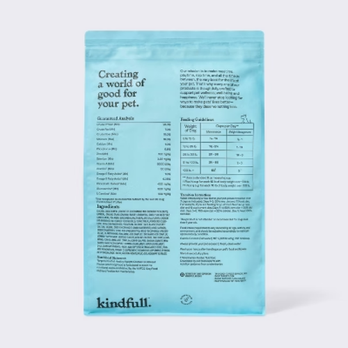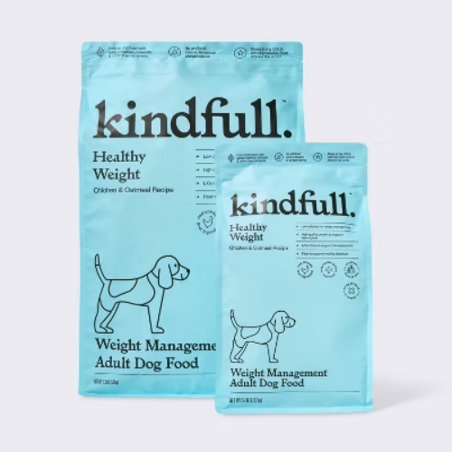 Important Note for Our Valued Customers: To offer you the best prices with free shipping, we occasionally experience shipping delays. If this happens, we’ll notify you immediately, issue a full refund, and invite you to place a new order at your convenience. To keep costs low, we sometimes reuse branded packaging boxes for shipments—we appreciate your understanding if you receive your order in repurposed packaging. Rest assured, all products we sell are 100% brand new, unopened, and freshly manufactured, including pet food and human-grade items, with a minimum 8-month shelf life remaining. If any issues arise, please contact us first—we’re committed to resolving them quickly. If you’re not completely satisfied, we offer a full refund with no hassle. Thank you for your trust and support! Description Check out the 13lb Chicken and Oatmeal Recipe Healthy Weight Dry Dog Food from Kindfull™. This natural dog food has added vitamins, minerals and other trace nutrients making it a nutritious and tasty option for your furry friend. It's low calorie for weight management and has high-quality protein to support lean muscle. It has L-Carnitine to support fat metabolism and Fiber to support healthy digestion. Kindfull™: Creating a world of good for your pet. Satisfaction guaranteed. highlights 13lb chicken and oatmeal recipe healthy weight dry dog food Low calories for weight management High-quality protein to support lean muscle L-Carnitine to support fat metabolism Fiber to support healthy digestion Weight management adult dog food No wheat, corn or soy Real chicken is first ingredient No artificial colors, flavors or preservatives No by-product meals Veterinarian-guided nutrition Made in the U.S.A with ingredients from around the world Amount : % Daily Value* Crude Protein (Min) 25% Crude Fat (Min) 7% Crude Fiber (Max) 10% Moisture (Max) 10% Calcium (Ca) (Min) 1% Phosphorus (P) (Min) 0.6% Zinc (Min) 100mg/kg Selenium (Min) 0.35mg/kg Vitamin A (Min) 5000IU/kg Vitamin E (Min) 50IU/kg Omega-6 Fatty Acids (Min) 1% Omega-3 Fatty Acids (Min) 0.05% Chondroitin Sulfate (Min) 400mg/kg Glucosamine (Min) 300mg/kg L-Carnitine (Min) 100mg/kg * Percentage of Daily Values are based on a 2,000 calorie diet. Ingredients: chicken, chicken meal (source of glucosamine and chondroitin sulfate), oatmeal, ground grain sorghum, barley, dried peas, dried plain beet pulp, canola meal, pea fiber, suncured alfalfa meal, natural flavor, chicken fat (preserved with mixed tocopherols), turkey meal, powdered cellu- lose, dicalcium phosphate, potassium chloride, salt, flaxseeds,yeast culture, taurine, dried chicory root, dried blueberries, dried carrots, dried cranberries, citric acid (preservative), mixed tocopherols (preser- vative), dl-methionine, iron amino acid complex, zinc amino acid complex, vitamin e supplement, ferrous sulfate, choline chloride, zinc oxide, l-car- nitine, copper amino acid complex, copper sulfate, sodium selenite, man- ganese amino acid complex, vitamin a supplement, niacin supplement, d-calcium pantothenate, riboflavin supplement, manganous oxide, thia- mine mononitrate, vitamin d3 supplement, vitamin b12 supplement, pyridox- ine hydrochloride, biotin, calcium iodate, folic acid, rosemary extract.