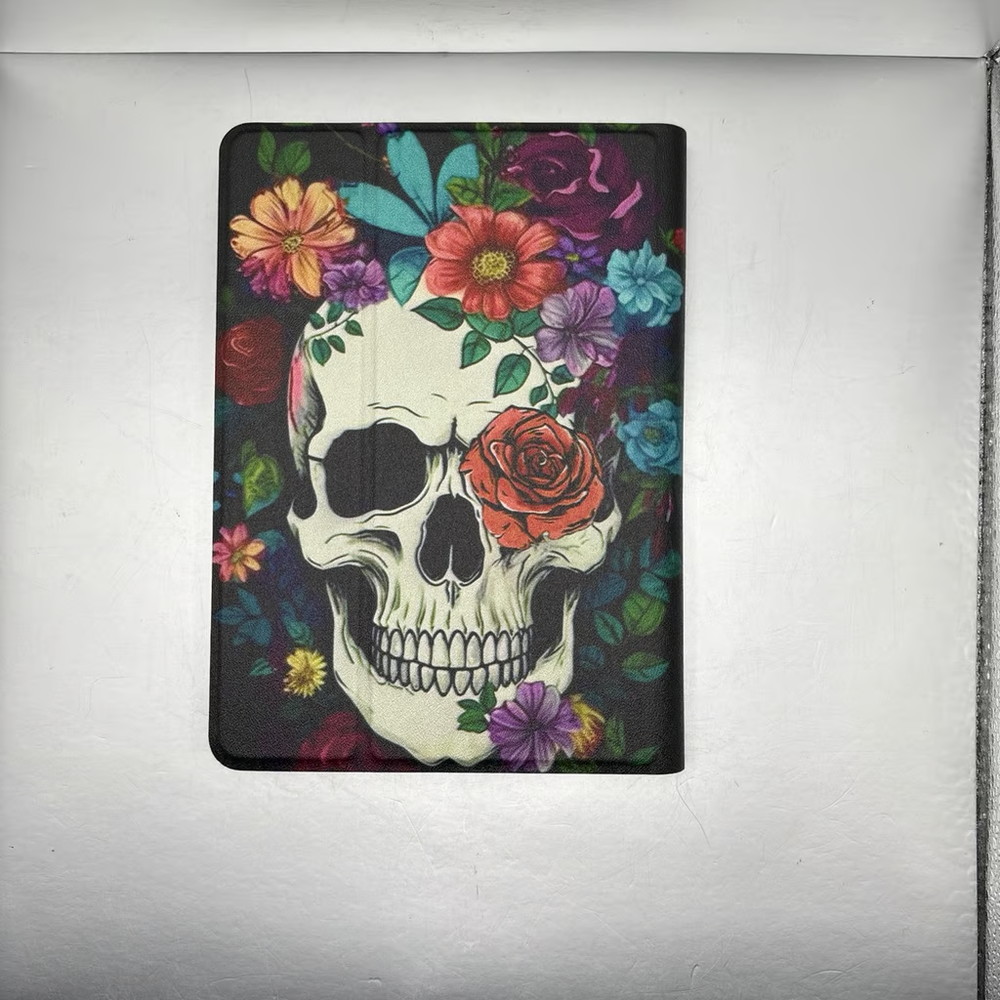 For Kindle Paperwhite Case 6.8 Inch 2021 PU Leather Smart Cover With Adjustable Stand & Auto Wake/Sleep Case For Kindle Paperwhite 11th Generation And Signature Edition - Cute Skull Flower