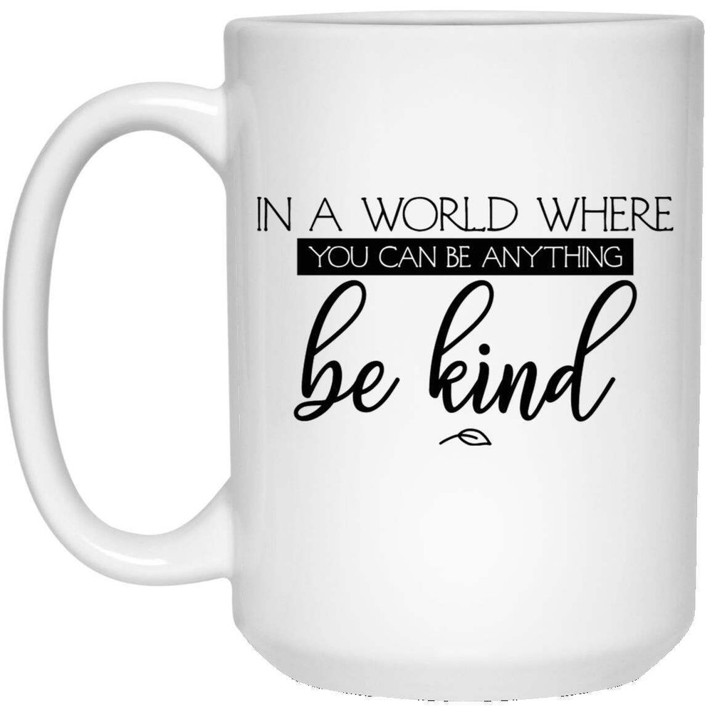 Coffee Mug In A World Where You Can Be Anything Be Kind Motivational Gift Product Details.. This high quality 11oz. ceramic white mug has a premium hard coat that provides crisp and vibrant color reproduction sure to last for years. Perfect for all hot & cold beverages. The highest quality printing possible is used. It will never fade no matter how many times you wash it. Material: 100% Ceramic. Print both sides. Dishwasher and Microwave Safe. High Gloss + Premium White Finish. Printed in the U.S.A. Personalized & Custom. We support personalized and custom mug to add custom, when placing an order, you can add notes to the "order note" in shipping address section. Also you can contact us directly via message. Shipping Info. Ready to ship in 1 to 2 business days, All products are made-to-order and proudly printed in the United States. Shipped by USPS and DHL, You will receive your order in 5-7 days. Replace & Refund. All products are defective during shipping broken, chipped will be replaced free of charge. You are not satisfied with the product, we will refund 100% money to you. If any other issues arise, please do not hesitate to message, we would be more than happy to assist you.