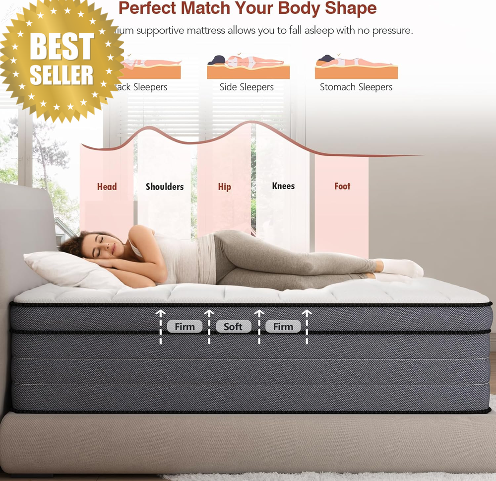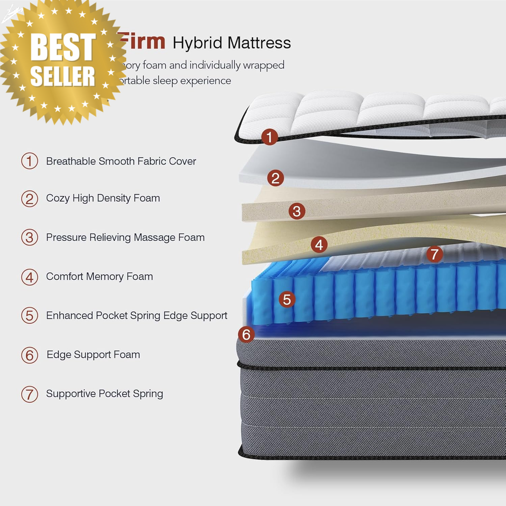 Fa lconbay_US King 14in Hybrid Mattress Medium Firm Gel Foam Bed in Box CertiPUR-US 365 Night FEATURES ⚙️ 14″ Medium Firm King Size Hybrid Mattress — Gel Memory Foam & Individually Wrapped Springs, Lumbar Support, Pressure Relief, Motion Isolation, CertiPUR‑US® | 365‑Night Trial 🪶 Product Description Sleep better and feel refreshed every morning with this 14‑inch Medium Firm King Size Hybrid Mattress — expertly engineered to deliver balanced comfort, breathable support, and lasting durability. 🛏️ Combining cooling gel memory foam with individually wrapped pocket springs, this mattress offers the perfect blend of cushioning comfort and structured support for your body, night after night. Whether you’re a back, side, or stomach sleeper, an office worker needing deep rest, or someone requiring enhanced spinal support, this hybrid mattress adapts to your needs. Motion‑isolating springs ensure peaceful sleep for you and your partner, while breathable materials help reduce heat buildup so you stay comfortable all night long. With a 365‑night trial and CertiPUR‑US® certified foam, this mattress brings premium sleep performance right to your doorstep. 🇺🇸 📏 Specifications • Size: King (76″ W × 80″ L × 14″ H) • Firmness: Medium Firm • Construction: Hybrid — Gel Memory Foam + Individually Wrapped Pocket Springs • Maximum Recommended Support Weight: Up to 700 lbs • Cover: 3D Soft Knit Breathable Fabric • Certifications: CertiPUR‑US® Certified Foam • Delivery: Vacuum‑Packed & Rolled (Bed in a Box) • Expansion Time: Approx. 24–72 Hours • Trial: 365‑Night Sleep Trial 🔧 Key Features ✅ Comfort for All Sleep Positions: Designed with a multi‑layer construction that conforms to your body for comfort whether you’re a back, side, or stomach sleeper. ✅ Motion Isolation for Quiet Nights: Individually wrapped coils help absorb movement — perfect for couples and pet owners who don’t want to be disturbed. ✅ Breathable & Cool: The 3D soft knit fabric and cooling gel foam work together to enhance airflow and wick away moisture for a fresher sleep. ✅ Pressure Relief Support: Gel memory foam contours to your shape and helps relieve pressure on hips, shoulders, and joints. ✅ Superior Edge Stability: Reinforced edges help prevent sagging and expand usable sleeping surface. ✅ Trusted Safety Standards: Foam materials are CertiPUR‑US® certified for content, emissions, and durability — safe for your home. 🌟 Why You’ll Love It ✔️ Balanced medium firm feel — not too soft, not too firm. ✔️ Excellent motion control for uninterrupted sleep. ✔️ Breathable sleep surface helps you stay cool. ✔️ Compatible with most king bed frames and foundations. ✔️ Great performance backed by a 365‑night trial . 📦 What’s in the Box • 1 × King‑Size Hybrid Mattress (14″) — vacuum‑sealed and rolled for easy delivery • Setup & Care Guide • Trial & Warranty Information 💡 Tips for Use • After unboxing, allow 24–72 hours for the mattress to fully expand and reach optimal comfort. • For safety during unboxing, ensure no one is standing in the direction the mattress could spring out. • Pair with a sturdy bed frame or foundation for best support and longevity. • Use a mattress protector to keep your new bed clean and protected. 📦 Fastest Shipping Guaranteed Unlike other stores that offer cheaper products but come with delivery delays of up to 30 days, we take pride in offering fast and reliable shipping . Based in the American, we guarantee your order will be delivered within 3–8 days , with no unexpected delays (unless under rare circumstances). When you shop with us, you’re choosing speed and satisfaction. 📦🚚 ❓ FAQs Q1: Is this mattress good for all sleep types? 👉 Yes — the medium firm feel and hybrid design support back, side, and stomach sleepers alike. Q2: Will it help with motion transfer? 👉 Absolutely — individually wrapped springs and memory foam help isolate motion for quieter sleep. Q3: Does this mattress sleep cool? 👉 Yes — breathable cover and cooling gel memory foam help improve airflow and reduce heat retention. Q4: How long should I wait before using it? 👉 Let it fully expand for 24–72 hours after unboxing for the best comfort. Q5: Is this mattress safe and certified? 👉 Yes — it’s made with CertiPUR‑US® certified foam , meeting rigorous standards for content and durability. Age Range Description Adult Style 14 Inch Medium Firm Item Weight 71.8 pounds Product Dimensions 80"L x 76"W x 14"Th Number of Layers 3 Top Style Euro Top Item Firmness Description Medium Firm Fill Material Gel Memory Foam Weight Limit 700 Pounds Size King Special Feature Breathable, Durable, Low Motion Transfer, Pressure Relief, Vacuums Cover Material 3D soft knit fabric 76.0 "th x 80.0 "th x 14.0 "th. Weight: 71.8 lb PAYMENT We accept all payments via Ebay using Credit Cards , Affrim, PAYPAL , Apple Pay and many others SHIPPING We are always working hard to ensure your package arrives as soon as possible. Please understand that some factors like weather, high postal traffic, and the performance of shipping companies are outside of our control. DELIVERY & RETURN POLICY We offer a 30-Day Return Policy on items in which you are not completely satisfied with. You have the option of a full-refund.