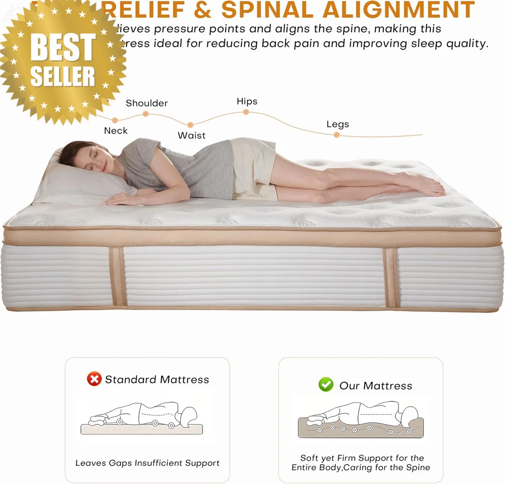 Fa lconbay_US King 14in Hybrid Mattress Medium Firm Gel Foam Pocket Springs CertiPUR 80x76in FEATURES ⚙️ King Mattress — 14″ Hybrid King Size in a Box | Medium Firm Gel Memory Foam & Pocket Springs for Cooling, Pressure Relief, Motion Isolation | CertiPUR‑US® & Oeko‑Tex Certified, Fiberglass‑Free (80″×76″) 🪶 Product Description Upgrade your sleep experience with this 14‑inch Hybrid King Size Mattress — designed to deliver the perfect balance of comfort, support, and durability. 🛏️ Combining plush gel‑infused memory foam with 800+ individually pocketed 2.0 mm pocket springs , this mattress adapts to your body’s shape and sleeping style to provide cooler sleep, pressure relief, and enhanced support night after night. Whether you’re a back, side, or stomach sleeper, the supportive medium‑firm feel and reinforced edge design ensure you get a stable, comfortable sleep surface from edge to edge. With certified safe materials and exceptional motion isolation, this mattress is an ideal choice for couples, light sleepers, and anyone wanting deeper, more restful sleep. 🇺🇸 📏 Specifications • Size: King (80″ W × 76″ L) • Thickness: 14 Inches • Firmness: Medium Firm • Construction: Gel Memory Foam + Individually Wrapped Pocket Springs • Pocket Springs: 800+ (2.0 mm gauge) • Covered With: Breathable Fabric • Certifications: CertiPUR‑US® & Oeko‑Tex Standard 100 • Safety: Fiberglass‑Free & Fire‑Compliant • Shipping: Compressed in a Box (Mattress in a Box) • Expansion Time: 24–48 Hours After Unboxing • Trial: 365‑Night Sleep Trial • Warranty: Forever Service & Brand Support 🔧 Key Features ✅ Supportive for All Body Types: Plush gel memory foam and hundreds of independent pocket springs offer balanced support and targeted comfort across all sleep positions. ✅ Pressure Relief & Spinal Alignment: The hybrid design helps reduce pressure points and aligns your spine — perfect for easing back discomfort and improving sleep quality. ✅ Motion Isolation & Quiet Sleep: Individually wrapped springs help reduce motion transfer so you and your partner sleep undisturbed. ✅ Reinforced Edge Support: Enhanced edges deliver greater stability and a larger usable sleep surface. ✅ Safe, Certified & Eco‑Friendly: Made with CertiPUR‑US® and Oeko‑Tex certified foam, free of harmful chemicals, fiberglass‑free, and fire compliant — safe for your home. ✅ Bed in a Box Convenience: Arrives compressed and rolled for easy shipping and setup — just unbox and let it expand. 🌟 Why You’ll Love It ✔️ Excellent balance of comfort and support for everyday sleep. ✔️ Cools as you sleep — thanks to gel memory foam and breathable design. ✔️ Great for couples thanks to advanced motion isolation. ✔️ Built with safe, certified materials for peace of mind. ✔️ Backed by a 365‑night trial plus ongoing brand support. 📦 What’s in the Box • 1 × King Size 14″ Hybrid Mattress (80″×76″) • Setup & Care Instructions • Trial & Warranty Information 💡 Tips for Use • After unboxing, allow 24–48 hours for your mattress to fully expand to its intended size and comfort. • Keep a safe distance from the mattress as it quickly unfurls during the initial expansion. • Pair with a supportive bed frame or foundation for best performance and longevity. • Use a mattress protector to help keep your sleep surface clean and protected. 📦 Fastest Shipping Guaranteed Unlike other stores that offer cheaper products but come with delivery delays of up to 30 days, we take pride in offering fast and reliable shipping . Based in the American, we guarantee that your order will be delivered within 3–8 days , with no unexpected delays (unless under rare circumstances). When you shop with us, you’re choosing convenience and satisfaction. 📦🚚 ❓ FAQs Q1: Is this mattress good for back and side sleepers? 👉 Yes — the hybrid design and medium‑firm support help with spinal alignment and pressure relief for multiple sleep styles. Q2: Does it help reduce motion transfer? 👉 Absolutely — individually wrapped pocket springs absorb movement to keep sleep undisturbed. Q3: Will this mattress sleep cool? 👉 Yes — gel‑infused memory foam and breathable construction help improve airflow and reduce heat buildup. Q4: How long does it take to expand? 👉 Allow approximately 24–48 hours for full expansion after unboxing. Q5: Is it safe and certified? 👉 Yes — it’s CertiPUR‑US® and Oeko‑Tex Standard 100 certified, fiberglass‑free, and fire compliant for a safe sleep environment. Item model number -9527 Product Dimensions 80"L x 76"W x 14"Th Cover Material Cotton and Polyester Blend Number of Layers 7 Top Style Plush Top Item Weight 93.8 pounds Fill Material Cotton, Gel Memory Foam, High Density Foam, Memory Foam Weight Limit 600 Pounds Size King (Medium Firm) Special Feature Breathable, Fire Retardant, Low Motion Transfer, Pressure Relief Item Firmness Description Medium Firm 76.0 "th x 80.0 "th x 14.0 "th. Weight: 93.8 lb PAYMENT We accept all payments via Ebay using Credit Cards , Affrim, PAYPAL , Apple Pay and many others SHIPPING We are always working hard to ensure your package arrives as soon as possible. Please understand that some factors like weather, high postal traffic, and the performance of shipping companies are outside of our control. DELIVERY & RETURN POLICY We offer a 30-Day Return Policy on items in which you are not completely satisfied with. You have the option of a full-refund.
