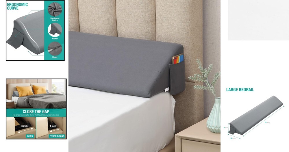 Soft & Supportive King Bed Wedge Pillow - Removable Cover & Quick Recovery Foam ‹ › ‹ › ‹ › ‹ › ‹ › ‹ › ‹ › ‹ › Soft & Supportive King Bed Wedge Pillow Enhance your sleeping experience with our luxurious King Bed Wedge Pillow, designed with your comfort in mind. Key Features: Close the Gap: Effectively fills the space between your headboard, wall, and mattress or footboard, preventing pillows, pets, and children's toys from falling. Quality Foam: Crafted from high-density foam that provides superior support while ensuring a soft, cozy feel against your skin. Removable Cover: Features a luxurious cover made from 100% polyester pongee—soft, non-toxic, and machine washable for easy maintenance. Ergonomic Design: The wedge triangular shape with a curved cut is designed for optimal comfort and support, wrapping you in relaxation without compromise. Bonus Side Pockets: Keep essentials close at hand with two convenient side pockets, perfect for your remote control, mobile phone, or other small necessities. Quick Recovery: Pillow is shipped compressed; simply remove it from the package and allow 24-48 hours for it to fully expand for the ultimate comfort experience. Embrace a New Level of Comfort: This wedge pillow not only enhances the aesthetic of your bedroom but also serves as a practical solution for those seeking convenience at their fingertips. Enjoy a good night’s sleep with no disturbances, as our thoughtfully crafted pillow ensures everything you need is always within . Peace of Mind Assurance: Each pillow undergoes rigorous inspection to maintain the highest quality standards. Plus, enjoy a NO-FUSS 30-day and a 1- Replacement Policy, ensuring your investment is completely risk-free. Why Wait? Add the Soft & Supportive King Bed Wedge Pillow to your cart today and experience the blend of style, convenience, and comfort that it brings to your home. Shipping Free & Fast Shipping - We offer free shipping to most of the USA with a normal delivery time of 3-7 days. However, due to the current situation, additional delivery time (up to 3 weeks) may be required for some items. Alternative Carriers - We may use alternative carriers (e.g. USPS, FedEx, UPS, etc.) to ensure your package arrives safely and on time. Due to the use of multiple carriers, we are unable to provide a tracking number automatically. Handling Time - Orders are processed and shipped within 1-2 business days of receiving cleared payment. Shipping Restrictions - Shipping to Alaska, Hawaii, Puerto Rico, Guam, and other US territories may incur shipping charges or delivery restrictions. Please contact us before ordering, or your order can be refunded/cancelled. State Restrictions - There may be restrictions based on your state of purchase. For example, certain items may not be shipped to California due to state regulations. Contact for Tracking Updates - If you require tracking updates or have any concerns about the delivery of your order, please feel free to contact us, and we will be happy to assist you. Return 30-Day Hassle-Free Returns - We want you to be completely satisfied with your purchase. If you are not, you can return the item within 30 days of receiving it for a full refund or exchange. Easy Return Process - To start a return, simply contact us and we will provide you with a prepaid return shipping label and detailed instructions. Restocking Fee - There are no restocking fees for returns. However, the buyer is responsible for return shipping costs if the return is not due to a seller's error. Refund Processing Time - Refunds will be processed within 5 business days of receiving the returned item in its condition. Payment We accept all major credit cards, PayPal, and Apple Pay for your convenience. Your payment information is secure and encrypted to ensure a safe and seamless transaction. Please complete your payment within 3 days of purchase to avoid any delays in shipping. Feedback Your feedback is extremely important to us. We strive to provide the best products and customer service possible. If you are satisfied with your purchase, please take a moment to leave us a positive review. If you have any concerns or issues with your order, please contact us before leaving negative feedback. We are committed to resolving any problems and ensuring your satisfaction. Contact Us If you have any questions or concerns, please feel free to out to our customer support team. You can contact us through the eBay messaging system. We are available Monday to Friday, 9:00 am to 5:00 pm EST, and we will do our best to respond to your inquiry within 24 hours. Buy it now and enjoy a pleasant shopping experience! Item Length: Bed Gap Filler Pillow Item Width: Bed Gap Filler Pillow Unit Quantity: 1 Material: Polyester,High Density Foam,100% Polyester Pongee Features: Hypoallergenic,Removable & Washable Cover,Breathable,Quick Recovery Foam Care Instructions: Machine Wash Department: Adults Room: Bedroom Size: 76 x 10 x 6 in Type: Bed Wedge Fill Material: Foam Color: Gray Shape: Wedge Pattern: Solid Style: Solid Closure Type: No Closure Thread Count: 200 or Less GSM (Grams per Square Meter): Below 150 Unit Type: lb