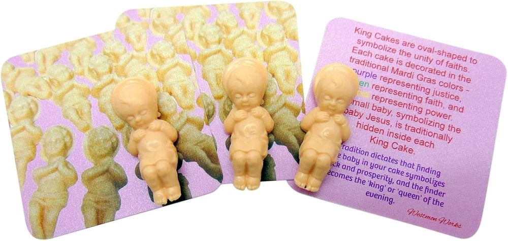 Store New Arrivals Add to Favorite View Feedback Contact Fast deliveries to the customer's home Quality customer service John Make the customers happy! King Cake Babies Pack for Mardi Gras with Baby Jesus Figurines with Story Cards, Set of 3 Description Each order has 3 of the same Baby Jesus Includes 3 cards that tell the story of the King Cake Perfect set for bakers to use for decorating Figurine material: Plastic DO NOT bake with the figurine inside. Figurine must be added after Product Description Discover the Magic of Mardi Gras with Westmon Works King Cake Babies! Celebrate this festive season with a cherished tradition! Westmon Works King Cake Babies are the perfect addition to your Mardi Gras celebration, bringing a dash of excitement and a taste of New Orleans right to your doorstep. Our extensive collection of King Cake Babies sets is a must-have for any Mardi Gras event. King Cakes King cakes are a sweet symbol of Epiphany, a Christian feast day in January that celebrates the visit of the Magi (the Three Kings or Three Wise Men you might recognize from Christmas nativity scenes) to the Christ Child. This feast day marks the close of the Christmas season as well as the beginning of Carnival, which lasts through Mardi Gras (Fat Tuesday), the day before Ash Wednesday and the start of Lent. The cake is baked in a ring or circular shape to represent a King's crown. This Baby Jesus pack is perfect for adding to your Kings Cake. King Cake Single Baby An easy gift for anyone from the big easy. 3 Pack of Babies We have a 3 pack set of King Cake Babies with cards for each one. Bulk Pack of King Cake Westmon Works also offers a bulk pack of 50 babies! Perfect for bakeries. Small American Family Business Our items are designed and packed by hand in the USA by a small family business in Michigan. Laissez les bons temps rouler! Unit Count 3 Count Product Dimensions 1"W x 1"H Material Plastic Item Weight 0.317 ounces Manufacturer recommended age 6 years and up Occasion Mardi Gras ABOUT US We offer the best prices around on high quality products. Our E-store includes media such as books, movies, music and games while offering electronics, toys, sporting apparel, clothing, tools, general home, garden items and more. SHIPPING We are always working hard to ensure your package arrives as soon as possible. Please understand that some factors like weather, high postal traffic, and the performance of shipping companies are outside of our control. We offer free shipping to the lower 48 states and ship within 2 business days of payment, usually sooner. We do not accept P.O. Boxes. Please provide a physical address. For shipping outside of the continental USA, we only use eBay's Global Shipping Program. The item is shipped to KY and then sent to the rest of the world. International customers are responsible for all duties and taxes. Continue to 'check out' to calculate costs for shipping the item to your country. Messages regarding eBay's Global Shipping Program MUST be directed at eBay EXCLUSIVELY. RETURNS We offer a 30-Day Return Policy on items in which you are not completely satisfied with. You have the option of a full-refund or an exchange of the item. No returns are available on items shipped outside of the USA PAYMENT We accept PayPal. CONTACT US This page content is yet to come Please ad us to your favorite seller and visit again later Thank You CUSTOMER SATISFACTION We try our very best to make sure every customer is completely satisfied. If there's a problem, message us! We're happy to help. WE ACCEPT