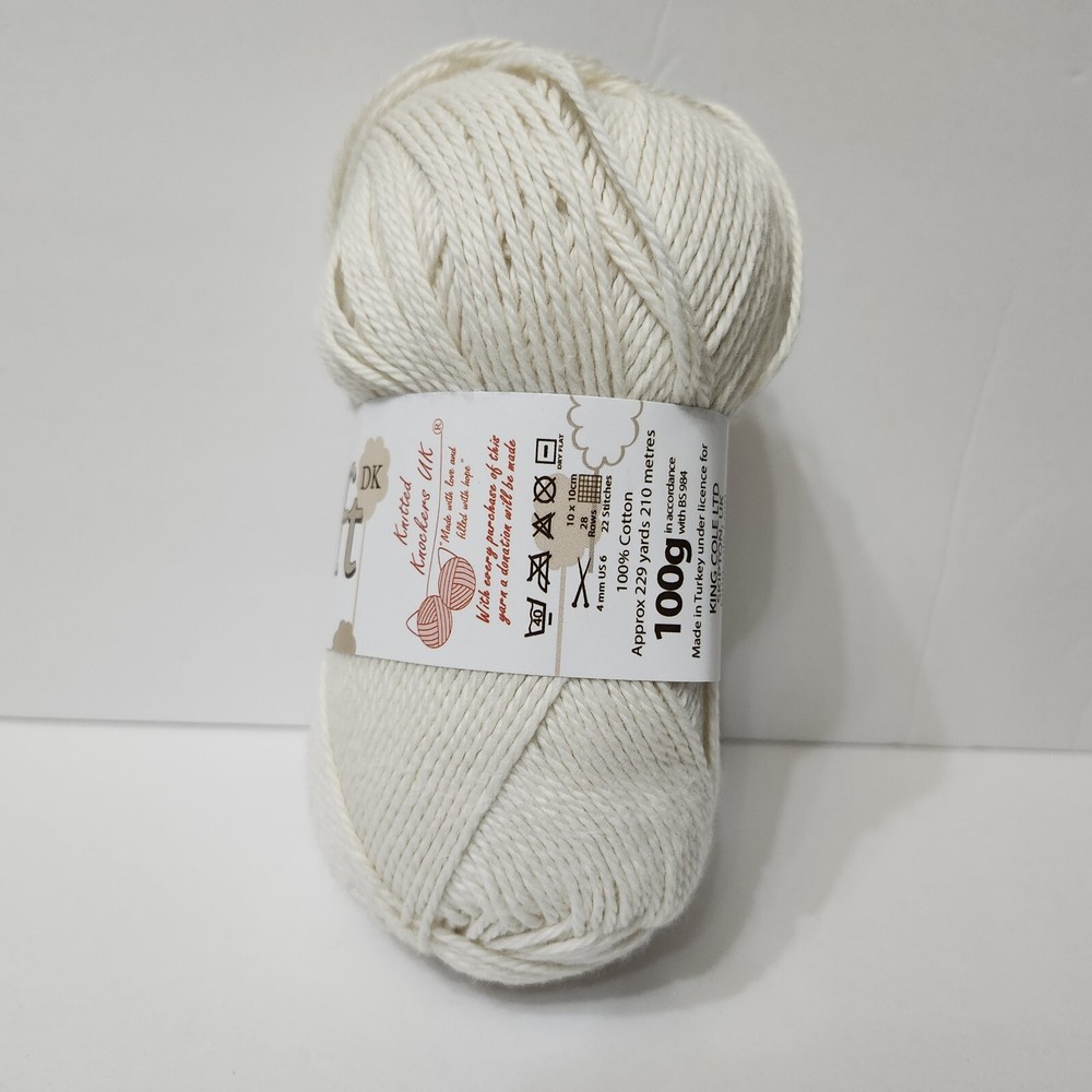 This yarn is so soft and perfect for cozy projects! The ecru shade is versatile and neutral, great for any season. Even though it's pre-owned, it looks brand new—no flaws at all. Works up beautifully, whether knitting or crocheting. A fantastic find for anyone who loves quality cotton yarn!