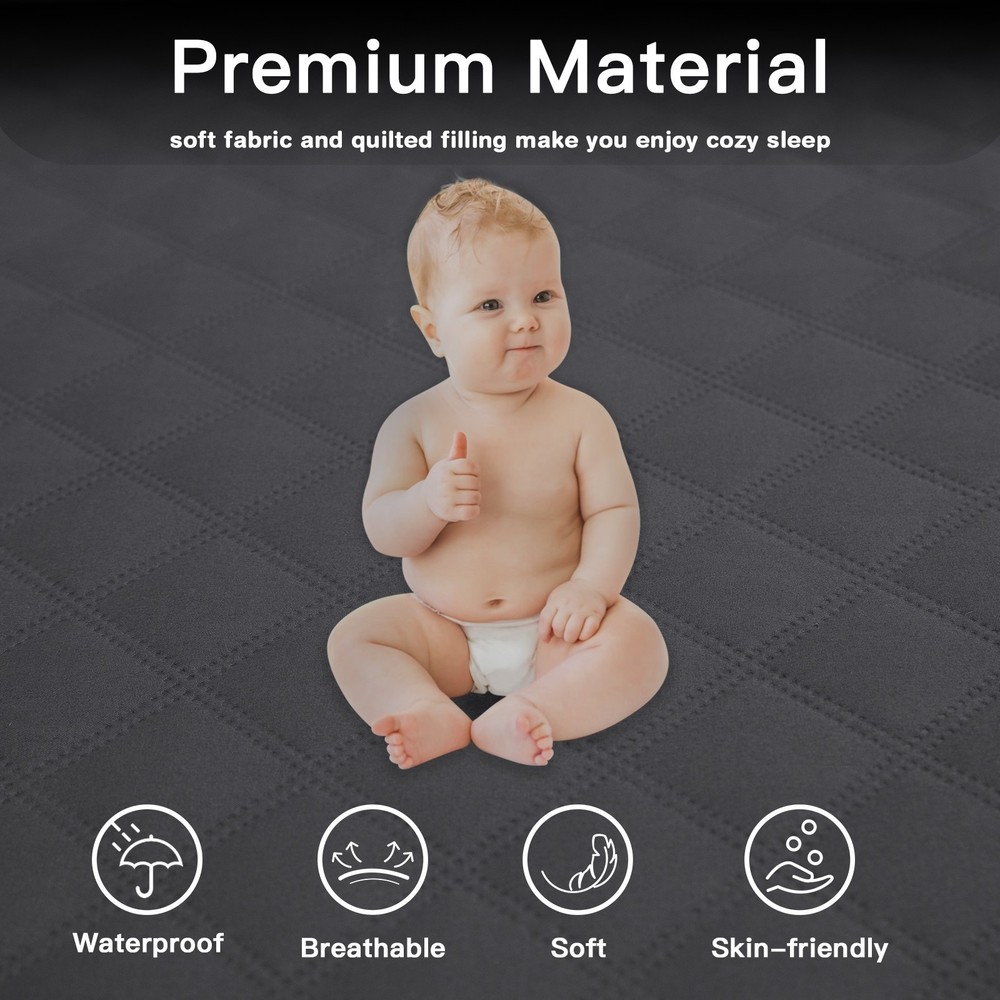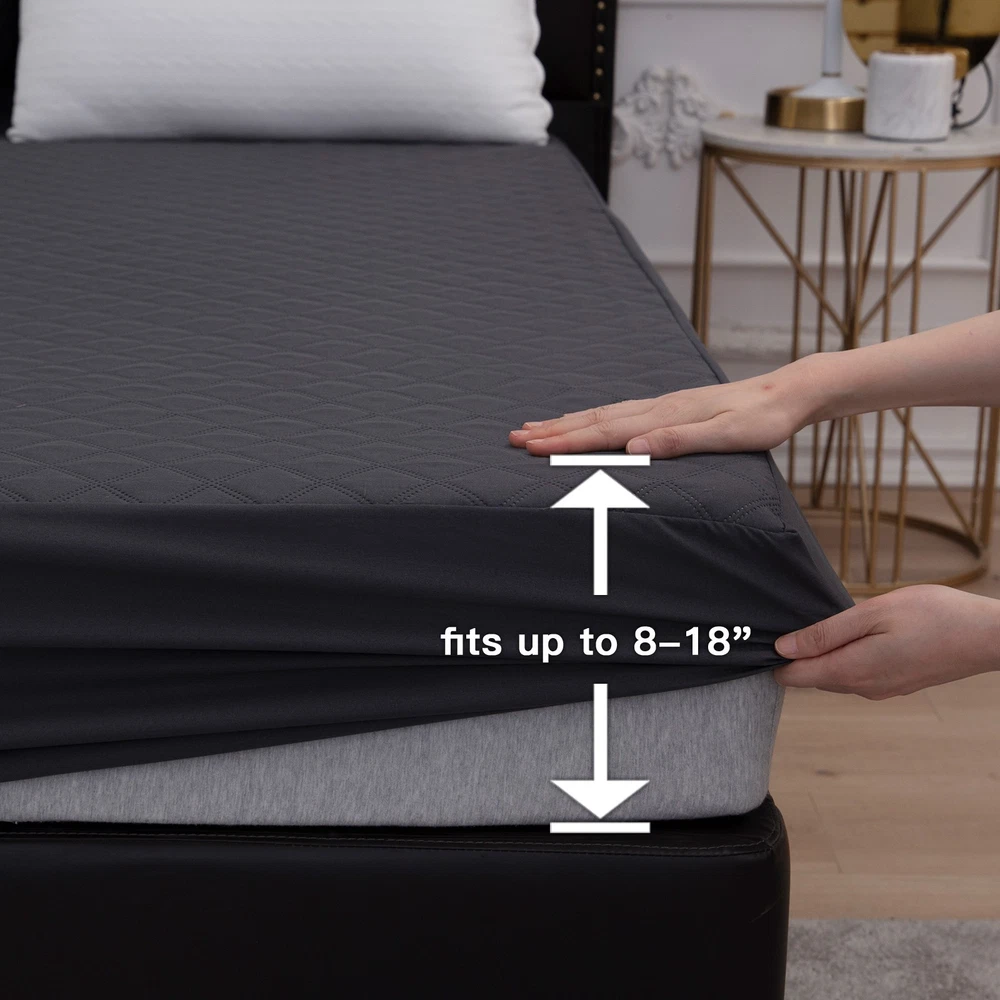 King Queen Full Twin Size Waterproof Mattress Protector Quilted Fitted Cover Specifications: Material: Top Fabric:Polyester coating TPU+ Quilting Cotton Skirt Fabric:100% Polyester Color: White Size: Twin 39x75x18in Full 54x75x18in Queen 60x80x18in King 76x80x18in Package Includes: 1pc Mattress Protector (No other things) Features: The mattress cover is made of high quality microfiber for extra softness and breathability. TPU waterproof layer effectively prevents sweat, body fluids, urine, and other accidental spills. 360° Elastic band design, fits mattresses up to 18in deep, keeping mattress stay in place and not slide off. Suitable for people with children, toddlers or pets. Protect the top of the mattress from liquids and stains. Machine washable, tumble dry on low, do not iron, do not dry clean, do not bleach. Note: Please allow a 1-3 cm difference due to manual measurement. Due to the different displays and different lights, the picture may not show the actual color of the item. Waterproof Barrier The mattress protector is designed with waterproof TPU layer on the back that can effectively protects your mattress from fluids, perspiration, drink, etc. Breathable The quilted filling of bed mattress protector allows air to circulate freely, increasing the softness and breathability, and also improving the water absorption. Premium Fabric Made of soft polyester fabric with diamond quilted pattern, the mattress cover adds breathable and comfortable feeling. Deep Pocket The waterproof mattress cover adopts deep pocket design, fits mattresses from 8 inches to 18 inches. 360° Full Surrounding The 360° elastic band around the bottom helps to keep the mattress pad stay in place, avoiding shifting and giving the mattress all-around protection. Care Instructions Hand wash or machine wash. Tumble dry low. Please do not dry clean. Do not iron and do not bleach. Meet Different Needs