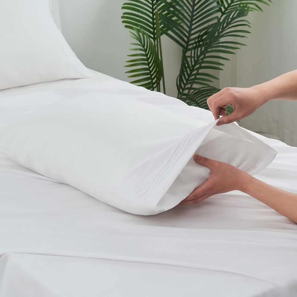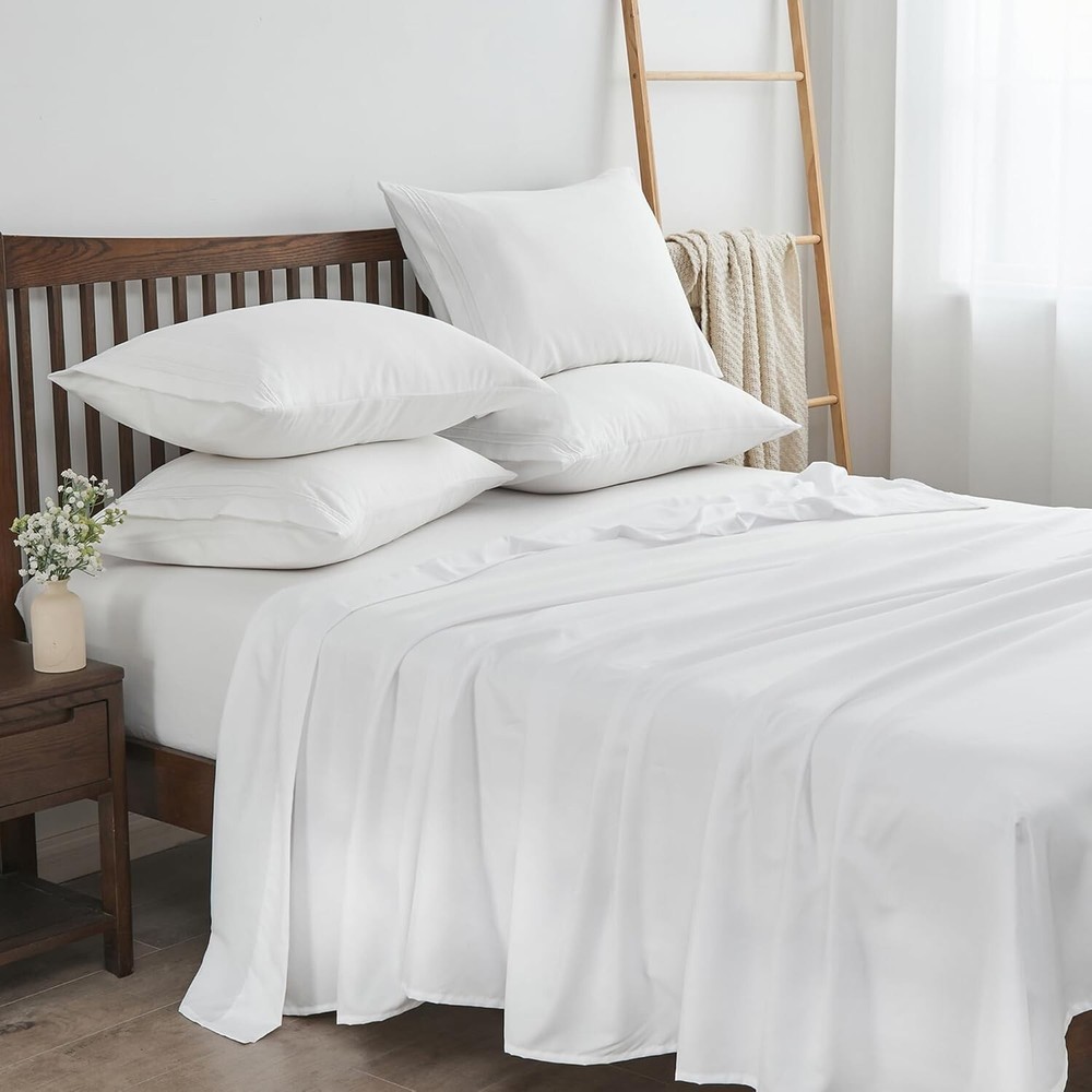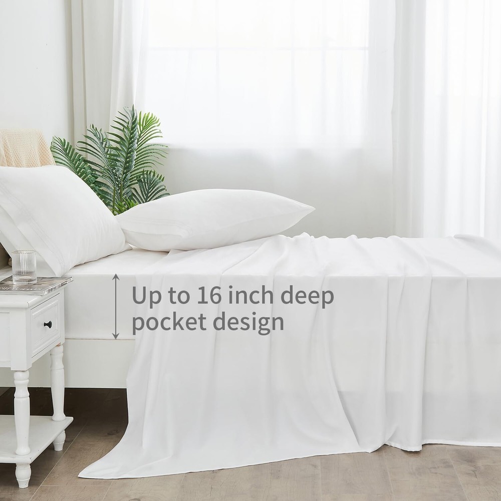 King Sheet Set Rayon Bamboo 6pcs Cooling Breathable Deep Pocket Hotel Linen ‹ › ‹ › ‹ › ‹ › ‹ › ‹ › ‹ › ‹ › ‹ › King Sheet Set - Rayon Bamboo 6pcs Cooling, Breathable, Deep Pocket Hotel Linen Indulge in Luxury Sleep Elevate your bedtime experience with our ultra-soft King Sheet Set, made from a blend of 40% rayon derived from bamboo and 60% microfiber. Each set comes with four exquisite embroidered envelope-style pillowcases, adding elegance and sophistication to your bedroom décor. Stay Cool and Comfortable Sweaty nights are a thing of the past! This sheet set features breathable fabric that wicks away moisture and enhances airflow, ensuring you stay cool. Our wrinkle-resistant and pill-resistant design guarantees long-lasting durability and keeps your linens looking pristine. Perfect Fit Every Time Enjoy a snug and secure fit with our deep-pocket design, accommodating mattresses up to 16 inches. Rest easy knowing your sheets will stay in place all night, providing uninterrupted sleep and ultimate comfort. Comfort Meets Convenience Designed for all ages, our sheet set is easy to care for; simply toss them in the washing machine for a gentle cycle. Experience fresh linens without the hassle and enjoy luxurious comfort at your fingertips. Complete Bedding Solution Transform your bedroom into a haven with our comprehensive King Sheet Set. Includes one flat sheet (108”x 102”), one fitted sheet (80”x 78”), and four pillowcases (20”x 40”), providing everything you need for a restful night. Your comfort is our top priority, ensuring you experience the perfect sleep every time. Why Choose Our King Sheet Set? Discover the perfect blend of luxury and practicality with our King Sheet Set. Not only does it enhance your sleeping experience with elegant softness, but it also provides cooling properties to keep you comfortable all night long. Invest in your sleep today and transform the way you rest! Shipping Free & Fast Shipping - We offer free shipping to most of the USA with a normal delivery time of 3-7 days. However, due to the current situation, additional delivery time (up to 3 weeks) may be required for some items. Alternative Carriers - We may use alternative carriers (e.g. USPS, FedEx, UPS, etc.) to ensure your package arrives safely and on time. Due to the use of multiple carriers, we are unable to provide a tracking number automatically. Handling Time - Orders are processed and shipped within 1-2 business days of receiving cleared payment. Shipping Restrictions - Shipping to Alaska, Hawaii, Puerto Rico, Guam, and other US territories may incur shipping charges or delivery restrictions. Please contact us before ordering, or your order can be refunded/cancelled. State Restrictions - There may be restrictions based on your state of purchase. For example, certain items may not be shipped to California due to state regulations. Contact for Tracking Updates - If you require tracking updates or have any concerns about the delivery of your order, please feel free to contact us, and we will be happy to assist you. Return 30-Day Hassle-Free Returns - We want you to be completely satisfied with your purchase. If you are not, you can return the item within 30 days of receiving it for a full refund or exchange. Easy Return Process - To start a return, simply contact us and we will provide you with a prepaid return shipping label and detailed instructions. Restocking Fee - There are no restocking fees for returns. However, the buyer is responsible for return shipping costs if the return is not due to a seller's error. Refund Processing Time - Refunds will be processed within 5 business days of receiving the returned item in its condition. Payment We accept all major credit cards, PayPal, and Apple Pay for your convenience. Your payment information is secure and encrypted to ensure a safe and seamless transaction. Please complete your payment within 3 days of purchase to avoid any delays in shipping. Feedback Your feedback is extremely important to us. We strive to provide the best products and customer service possible. If you are satisfied with your purchase, please take a moment to leave us a positive review. If you have any concerns or issues with your order, please contact us before leaving negative feedback. We are committed to resolving any problems and ensuring your satisfaction. Contact Us If you have any questions or concerns, please feel free to out to our customer support team. You can contact us through the eBay messaging system. We are available Monday to Friday, 9:00 am to 5:00 pm EST, and we will do our best to respond to your inquiry within 24 hours. Buy it now and enjoy a pleasant shopping experience! Unit Quantity: 1 Material: Microfiber,Rayon Features: Breathable,Cooling,Deep Fitted,Embroidered,Wrinkle Resistant,Pill Resistant Care Instructions: Machine Wash Department: Unisex Baby & Toddler,Kids,Teens,Adults Room: Bedroom Size: King Type: Sheet Set Color: White Pattern: Solid Thread Count: 200 or Less Style: Luxury Shape: Rectangular Unit Type: Unit