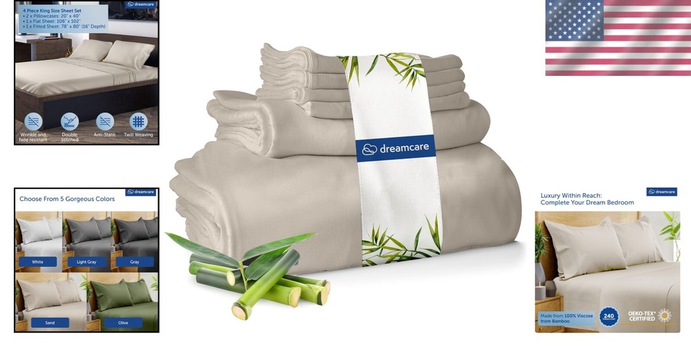 King Size Bamboo Sheets Set 4 Pc Cooling Soft Luxury Deep Pocket Bed ‹ › ‹ › ‹ › ‹ › ‹ › ‹ › ‹ › ‹ › ‹ › King Size Bamboo Sheets Set - 4 Pc Cooling Soft Luxury Transform your sleep experience with our luxurious King Size Bamboo Sheets Set, crafted from 100% viscose derived from bamboo for an ultra-soft touch and remarkable comfort. Features: Experience luxurious comfort with a 240 thread count for silky softness that ensures a smooth and cozy sleep. Designed to fit deep mattresses up to 16" for a snug and secure fit that won't come loose during the night. Effortless care with machine washable fabric that maintains its beauty and comfort with minimal effort. Complete set includes 2 pillowcases (20" x 40"), 1 flat sheet (106" x 102"), and 1 fitted sheet (78" x 80" x 16"). OEKO-TEX Certified, ensuring the sheets are free from harmful substances for a safe and healthy sleep environment. Benefits: Indulge in the silky soft texture that enhances your sleep quality, night after night. Perfect for hot sleepers, our cooling sheets help regulate temperature for a comfortable night's sleep. Easy to maintain, freeing you from complicated laundry routines. Enjoy peace of mind knowing you have chosen a product that is environmentally friendly and safe for your health. Why Choose Our King Size Bamboo Sheets Set? Investing in your sleep is investing in your well-being. With an average person spending around 26 asleep, our King Size Bamboo Sheets Set offers unparalleled softness and comfort for luxurious sleep. The perfect solution for deep mattresses, our sheets promise a secure fit, effortless cleaning, and peace of mind with OEKO-TEX Certification. Sleep like a baby and elevate your bedding collection – order your set today and embrace the ultimate in luxury and comfort! Shipping Free & Fast Shipping - We offer free shipping to most of the USA with a normal delivery time of 3-7 days. However, due to the current situation, additional delivery time (up to 3 weeks) may be required for some items. Alternative Carriers - We may use alternative carriers (e.g. USPS, FedEx, UPS, etc.) to ensure your package arrives safely and on time. Due to the use of multiple carriers, we are unable to provide a tracking number automatically. Handling Time - Orders are processed and shipped within 1-2 business days of receiving cleared payment. Shipping Restrictions - Shipping to Alaska, Hawaii, Puerto Rico, Guam, and other US territories may incur shipping charges or delivery restrictions. Please contact us before ordering, or your order can be refunded/cancelled. State Restrictions - There may be restrictions based on your state of purchase. For example, certain items may not be shipped to California due to state regulations. Contact for Tracking Updates - If you require tracking updates or have any concerns about the delivery of your order, please feel free to contact us, and we will be happy to assist you. Return 30-Day Hassle-Free Returns - We want you to be completely satisfied with your purchase. If you are not, you can return the item within 30 days of receiving it for a full refund or exchange. Easy Return Process - To start a return, simply contact us and we will provide you with a prepaid return shipping label and detailed instructions. Restocking Fee - There are no restocking fees for returns. However, the buyer is responsible for return shipping costs if the return is not due to a seller's error. Refund Processing Time - Refunds will be processed within 5 business days of receiving the returned item in its condition. Payment We accept all major credit cards, PayPal, and Apple Pay for your convenience. Your payment information is secure and encrypted to ensure a safe and seamless transaction. Please complete your payment within 3 days of purchase to avoid any delays in shipping. Feedback Your feedback is extremely important to us. We strive to provide the best products and customer service possible. If you are satisfied with your purchase, please take a moment to leave us a positive review. If you have any concerns or issues with your order, please contact us before leaving negative feedback. We are committed to resolving any problems and ensuring your satisfaction. Contact Us If you have any questions or concerns, please feel free to out to our customer support team. You can contact us through the eBay messaging system. We are available Monday to Friday, 9:00 am to 5:00 pm EST, and we will do our best to respond to your inquiry within 24 hours. Buy it now and enjoy a pleasant shopping experience! Unit Quantity: 4 Material: Bamboo,Viscose from Bamboo,Viscose derived from Bamboo Features: Cooling,Machine Washable,Silky Soft,Ultimate Comfort,Perfect Fit Theme: Luxury Care Instructions: Machine Wash Department: Adults Room: Bedroom Size: King Type: Sheet Set Color: Sand Pattern: Solid Thread Count: 240 Style: Solid Shape: Rectangular GSM (Grams per Square Meter): Not Specified Unit Type: Unit
