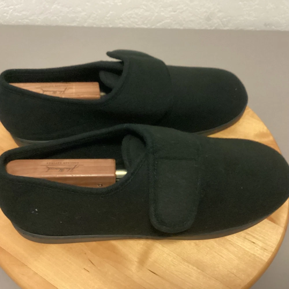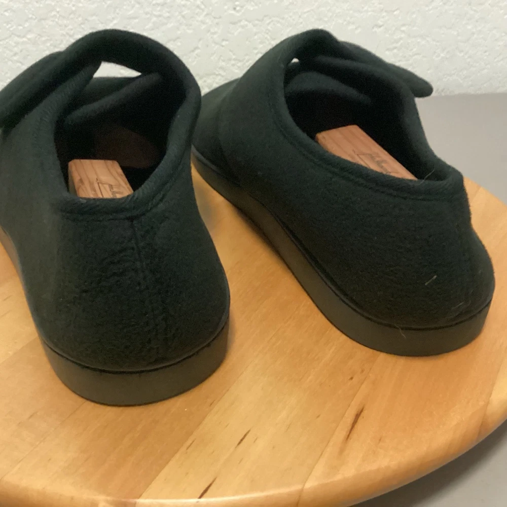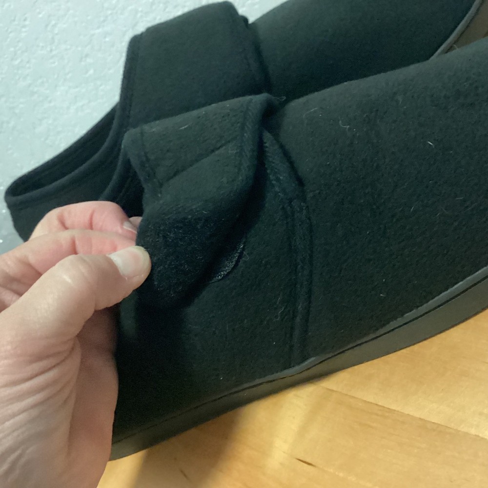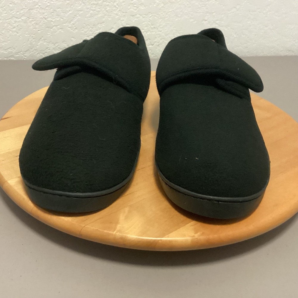 Size: 11 WIDE Comfortable and convenient footwear: these black slippers are designed for ultimate ease and relaxation. Featuring an adjustable hook-and-loop strap, these slippers offer a customizable fit, perfect for those needing extra room or experiencing swelling. The slip-on design makes them ideal for quick and easy wear, while the durable sole provides reliable support and traction on various indoor surfaces. These slippers are best worn around the house, in hospitals, or when traveling. Style: Slip-On Upper Material: Fabric Color: Black Department: Men Insole Material: Fabric Lining Material: Fabric Outsole Material: Rubber Type: Slipper Heel Height: Flat (Under 1 in) Model: King Size Comfort Keywords: men's slippers, black slippers, adjustable slippers, wide width slippers, comfort slippers, house shoes, indoor slippers, men's footwear, slip on slippers, hook and loop slippers, easy wear slippers, hospital slippers, travel slippers Flaws: None. Like New. Note: Colors may appear different in person due to lighting during photography. Item is PREOWNED Unless Otherwise Specified. Please See All Photos. I try to provide plenty of photos and information. Please see all photos For Details. I ship quick, typically within 24 hours, M-F. Holidays and Weekends Might Affect Shipping. Thank you for your interest. B16