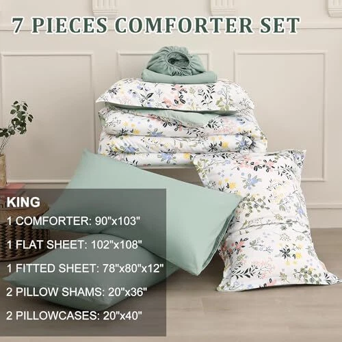 Return Policy Fast Delivery Trusted seller King Size Comforter Set,7 Pieces Floral Leaves Pattern on White Bedding Set Lightweight Soft Bed in a Bag King with 2 Pillowcases Reversible Botanical Comforter Set Product Description [7 PIECES BED IN A BAG]: This blue comforter set king include 7 Pieces: 1 comforter set king(90”x103”)+2 pillow shams(20”x36”)+2 pillowcases(20”x40”)+1 fitted sheet(78”x80”+14")+1 flat sheet(102”x108”) [FLORAL REVERSIBLE PATTERN ]: This quilt adopts a reversible design. A side is a colorful floral design that looks colorful and adds a bright and lively atmosp to your bedroom, suitable for all ages. B Side is fresh and pure blue. Soft color combinations make your bed look more luxurious. [ULTRA SOFT MICROFIBER MATERIAL]:This botanical comforter set used the whole piece of polyester as the filling of the comforter which makes the comforter more soft and warm. It is more comfortable and breathable to use, skin-friendly, smooth to the touch, and fade-resistant. High density stitches make sure to avoid the comforter to shifting and clumping. [EASY TO CARE]:This bed in a bag king polyester microfiber high quality fabric, easy care, low temperature machine wash, never fade, wrinkle free, dustproof, easy to remove pet's fur. Our comforter set can be used directly without a quilt cover, which is more convenient to use. [WARM TIPS]: As the comforter set is packed in vacuum bags, it is recommended that you dry the comforter set in the sun and gently tap the quilt to make it fluffy again. Shipping Returns Payment Shipping Shipping is FREE to all addresses other than APO/PO boxes in the lower 48 states. All our stock ships from US-based warehouses. Shipped via USPS or UPS (depending on location and package weight) Unless stated otherwise, all orders will ship within 24-72 hours of your payment being processed. Check our feedback to see the great reviews of FAST shipping we offer. Returns Seller does not accept returns Payment We currently accept payment via eBay managed payments only. Once payment is cleared, we will dispatch your shipment within 1-3 business days. Please refer to the "Shipping" tab for more information regarding shipping speed to your destination.