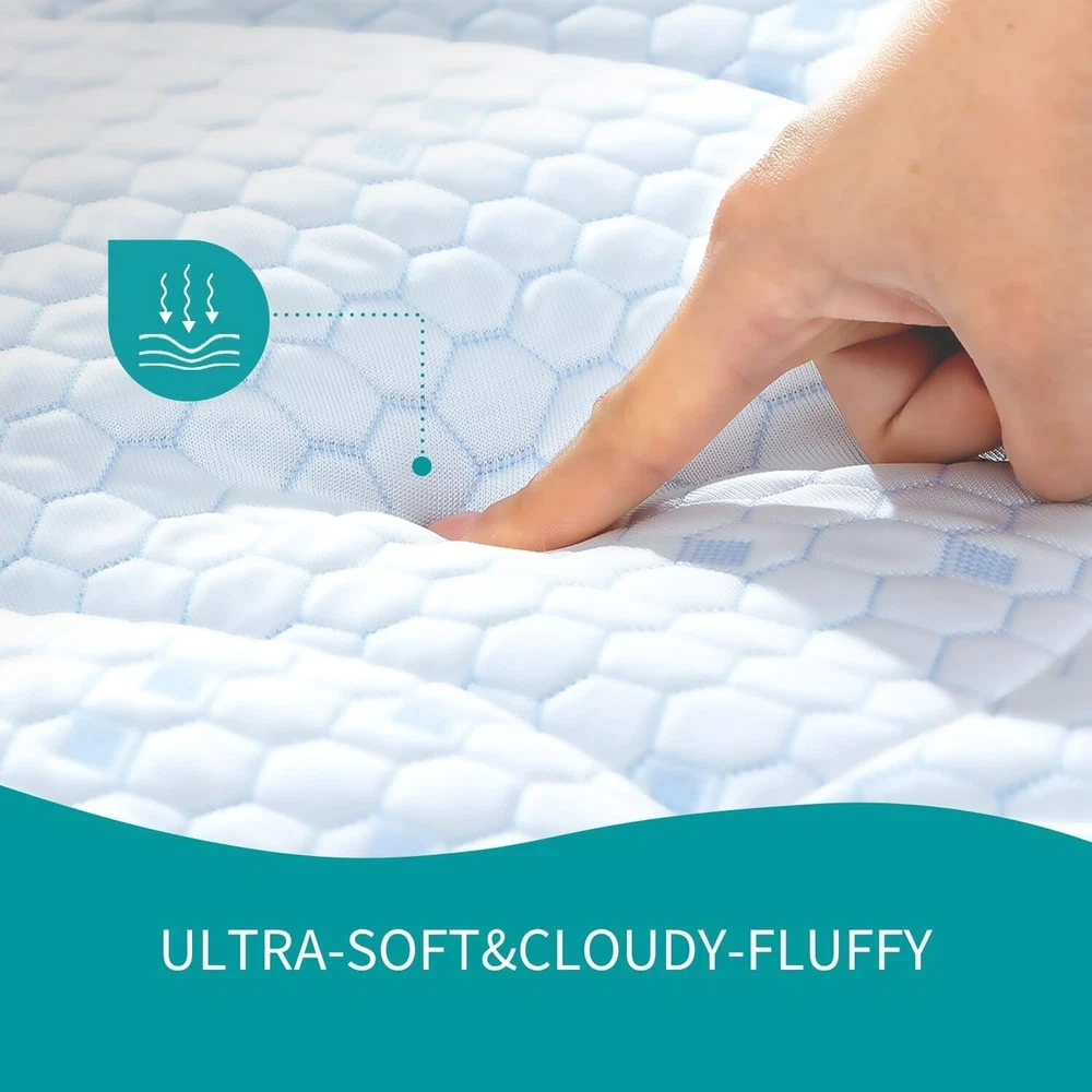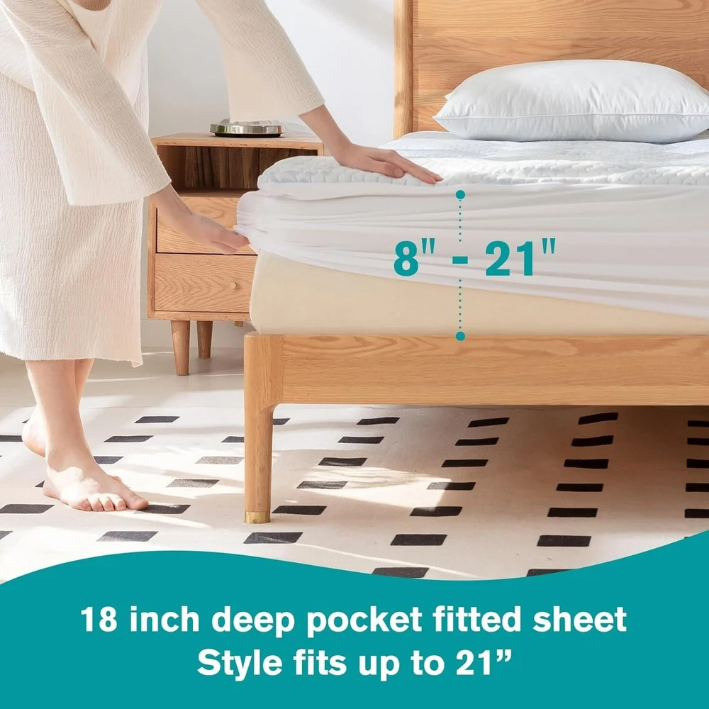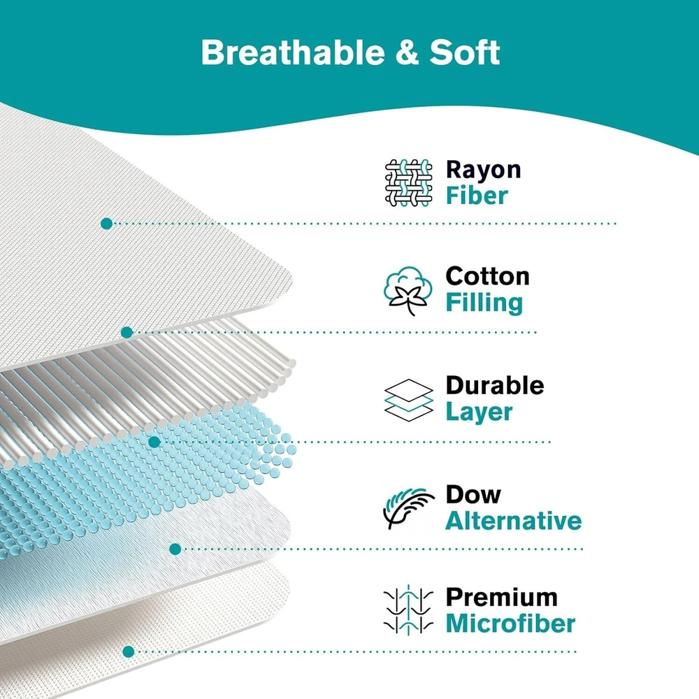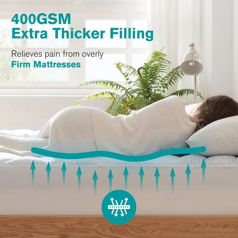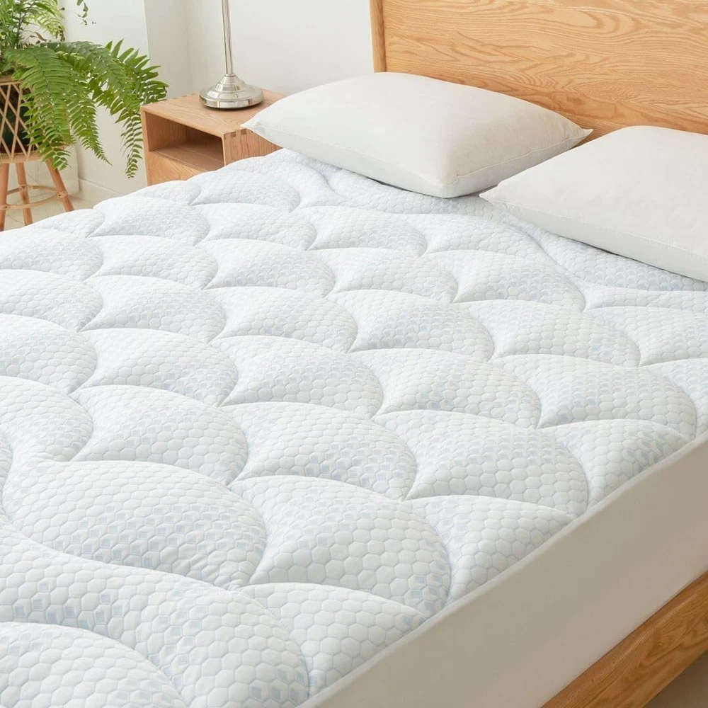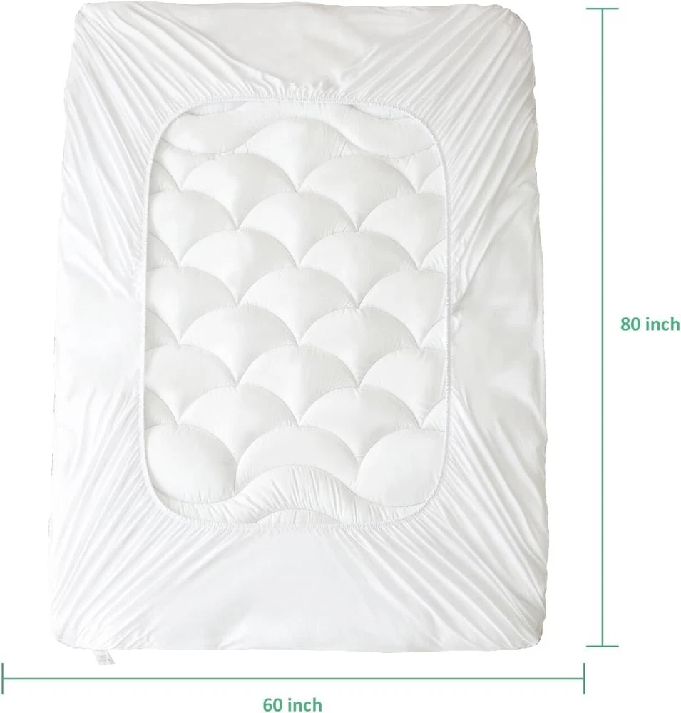 Queen Size Cooling Mattress Pad- Superme Comfort and Breathable, Unmatched Support Mattress Topper, 3 Zone Ergonomic Design, Up to 21 Inch Deep Pocket(60x80,White) Brand Primesoft Color White Size Queen Fabric Type Rayon Special Feature Washable About this item Immerse Yourself in Unparalleled Cooling: Our Cooling Mattress Pad redefines your sleep experience. Engineered with advanced nano-cold molecular materials and a state-of-the-art 3D air fabric, it guarantees a refreshingly cool and breathable surface that invites deep, uninterrupted sleep. Smartly Engineered for Supreme Support: This pad is not just about comfort; it's designed for support. Its innovative 3-zone layout features precision-crafted wave patterns at the head and foot areas, maintaining edge stability, while the cloud-shaped quilting in the center meticulously distributes body pressure, promising a sleep so undisturbed, you'll wake up feeling rejuvenated every day. Luxurious Comfort & Unmatched Durability: Our mattress pad boasts an exquisite embossed surface treatment and filling 400 gsm snow down alternative, ensuring a level of opulence that enhances your sleep quality. Its unparalleled thickness and softness offer the ultimate coziness for a restful slumber, night after night. Effortless Maintenance, Long-Term Assurance: Designed for convenience, this pad is machine washable and exhibits superior elasticity, effortlessly fitting (8"-21") deep mattress while maintaining durability even after prolonged use. Certified Excellence: Your safety and quality are our priority. That's why our product holds the prestigious Oeko-Tex Standard 100 certification, guaranteeing premium safety and uncompromised quality for your peace of mind.