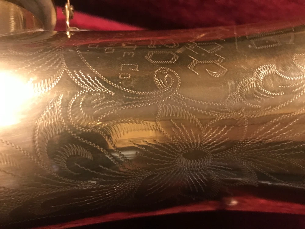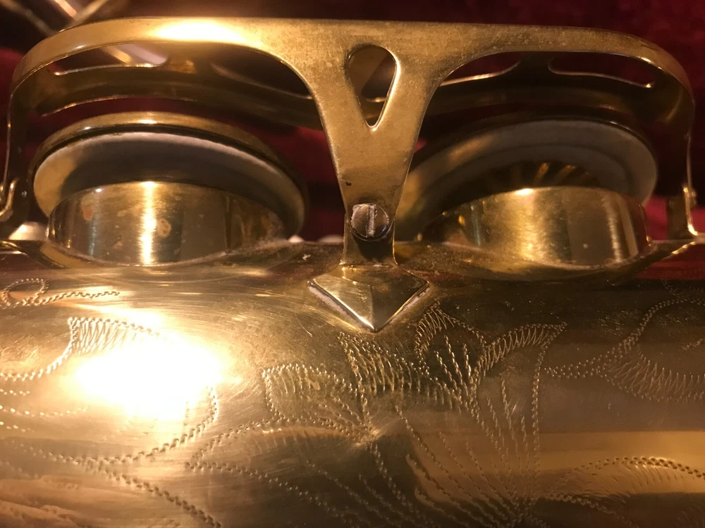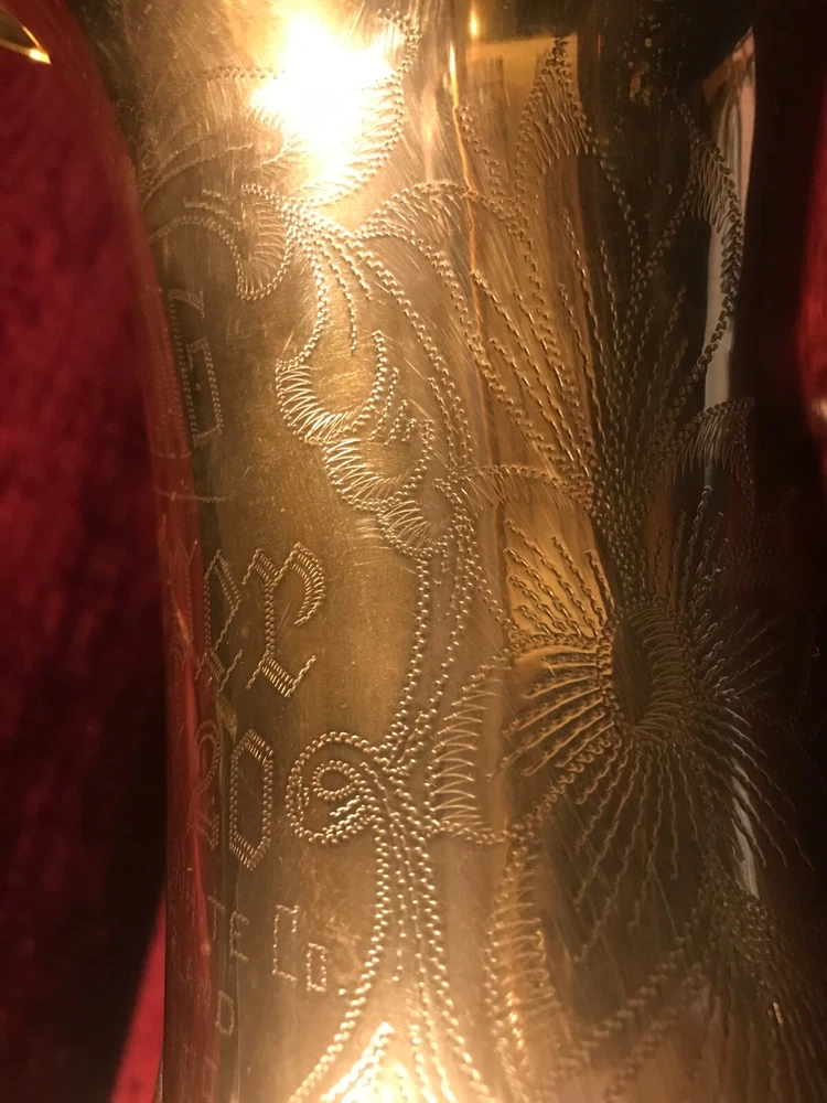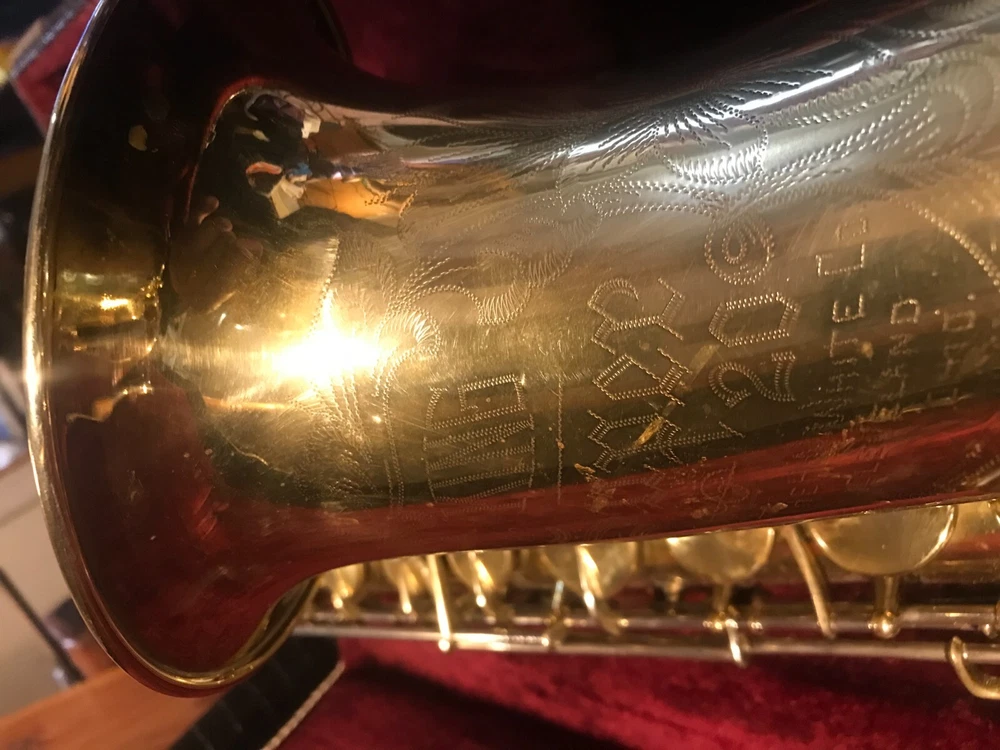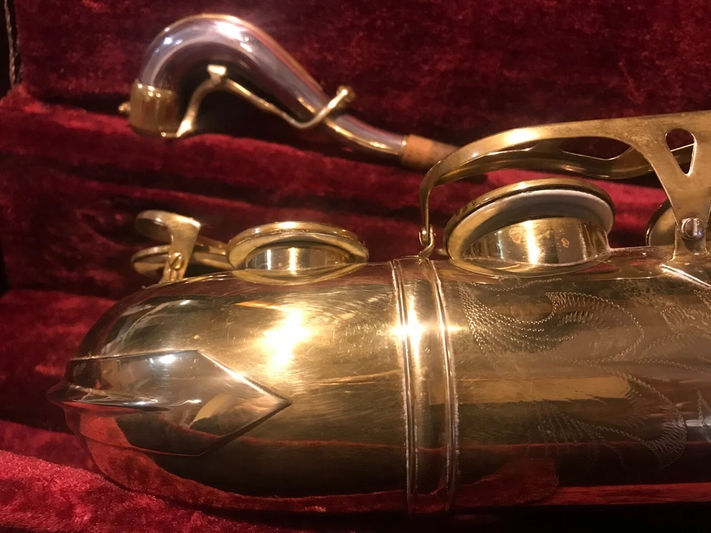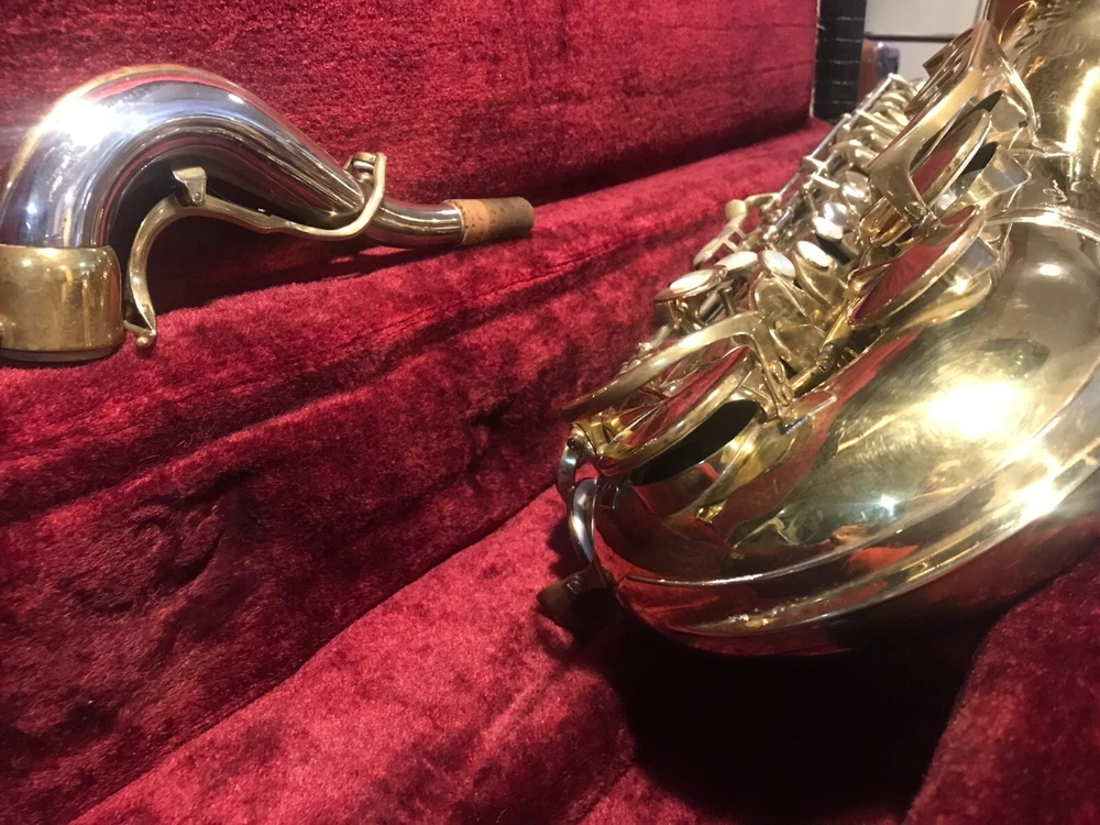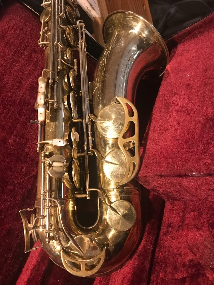 Great horn in very good condition with very light signs of wear. Hard to see but maybe a tiny ding here and there not substantial enough to plainly see in pix. Has no lacquer shine just the quality brass metal of the body. All the keys and pearls are in tacked and the horn looks great. If you need more info feel free to contact me and I will do my best to provide it. This sax is modestly priced and all reasonable serious offers will be considered. Thank you.