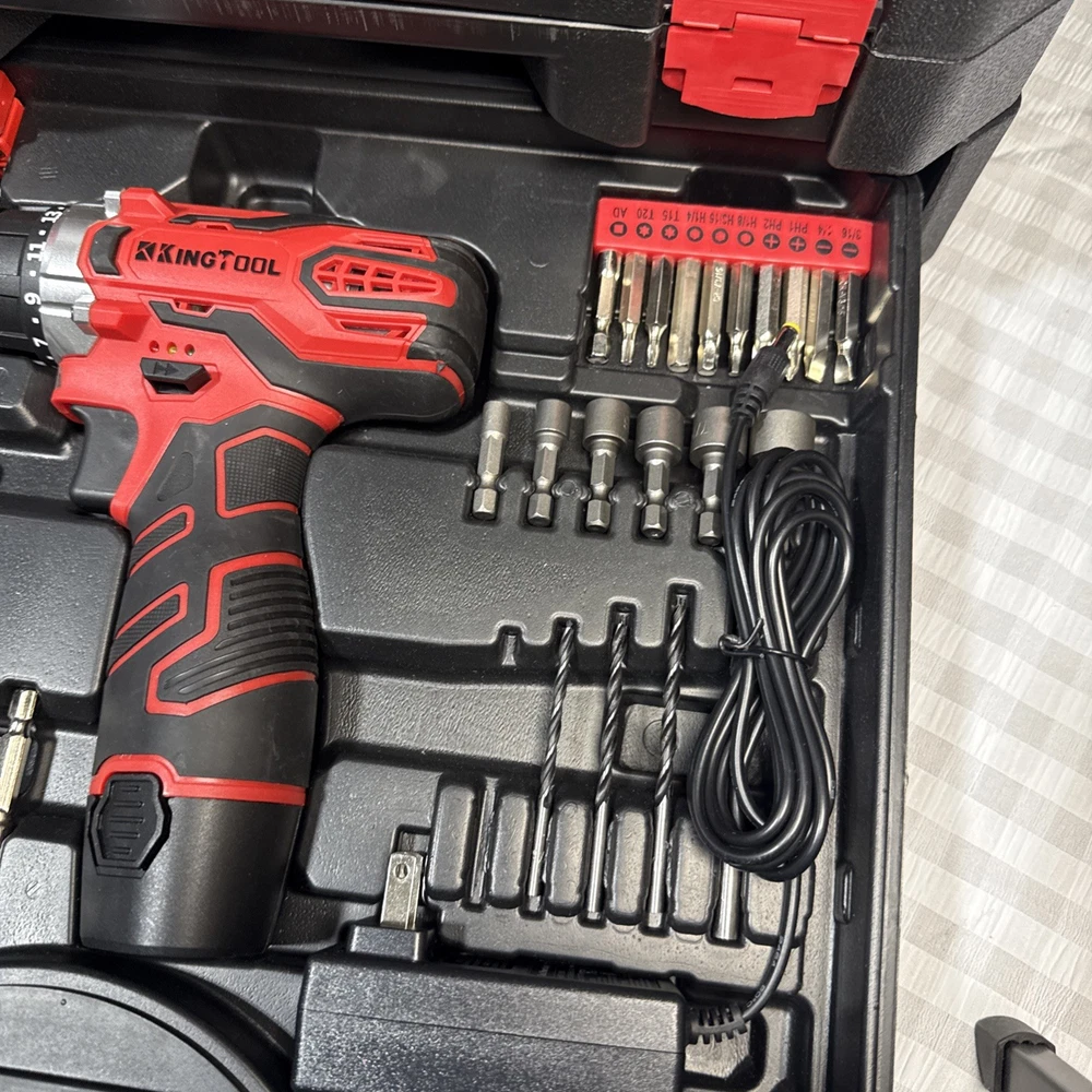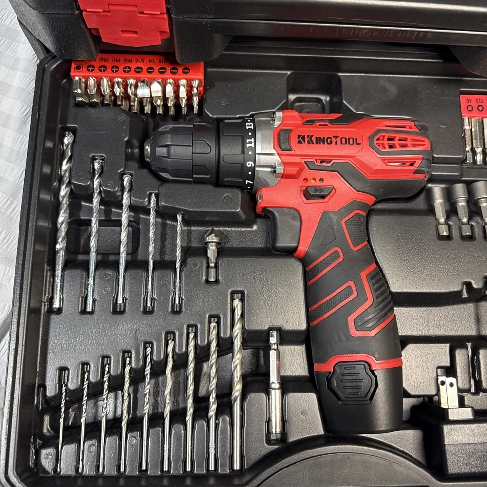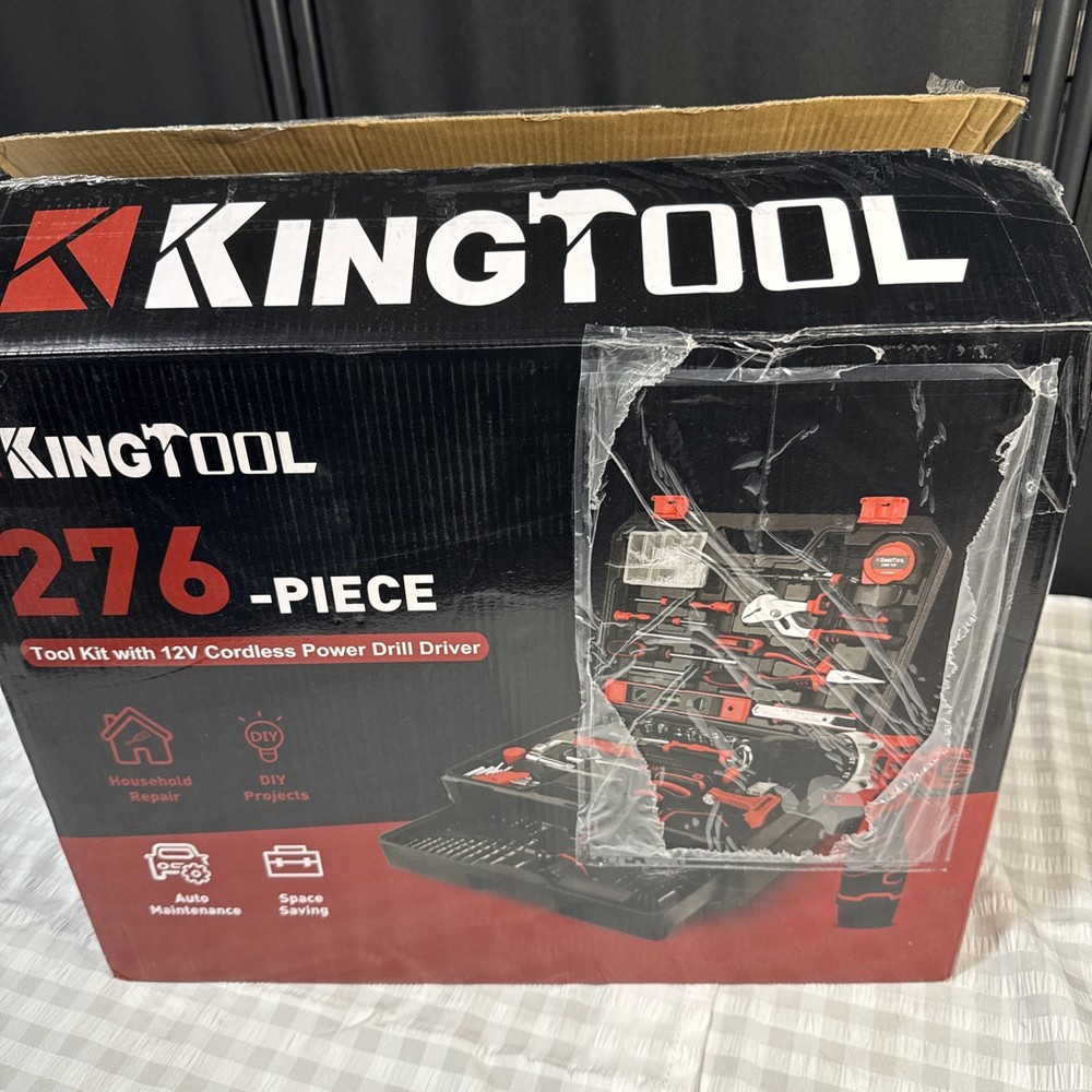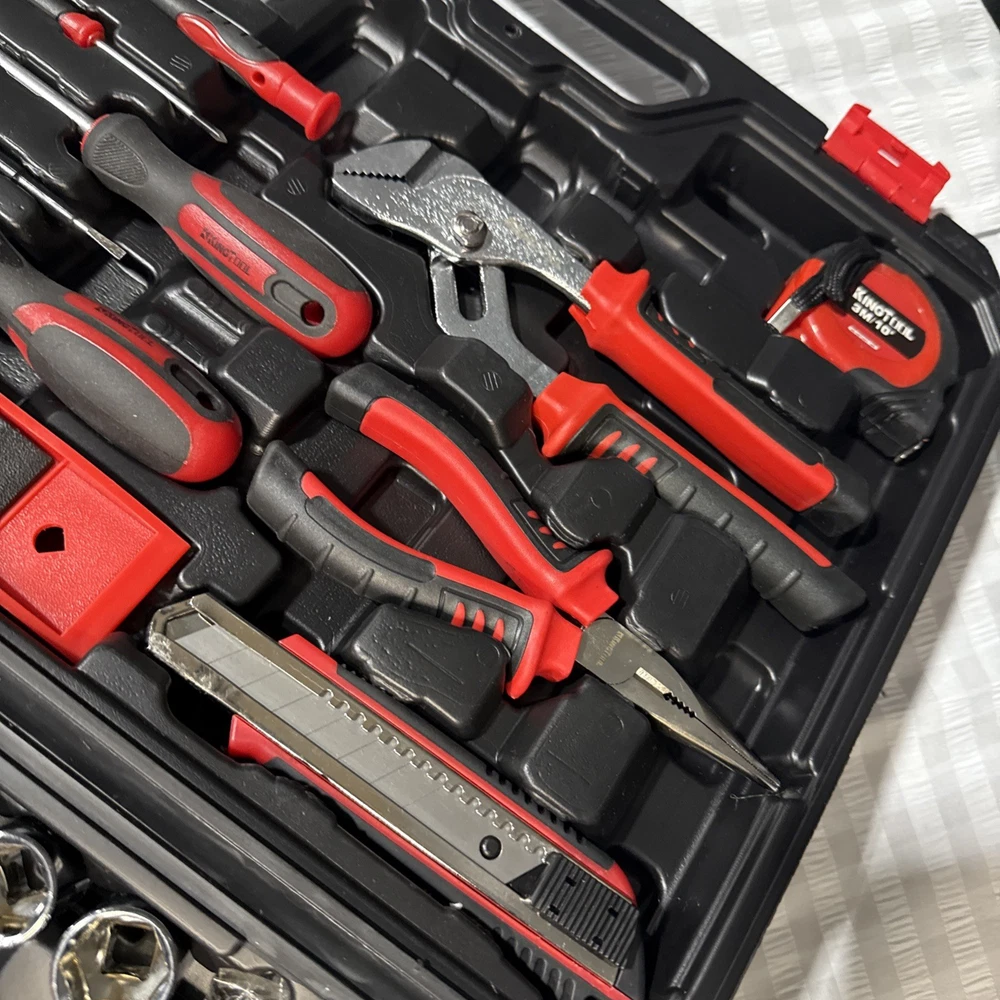 The KingTool 265 Piece Tool Set includes a wide variety of household and DIY tools, such as hammers, screwdrivers, wrenches, power drills, and pliers. The tools are organized in a hard case for easy storage and transport, and all pieces are included in the set. With a metric system of measurement and a mix of both metric and imperial units, this set is suitable for a range of projects around the home or in the workshop. The black and red case adds a stylish touch to this comprehensive tool collection.