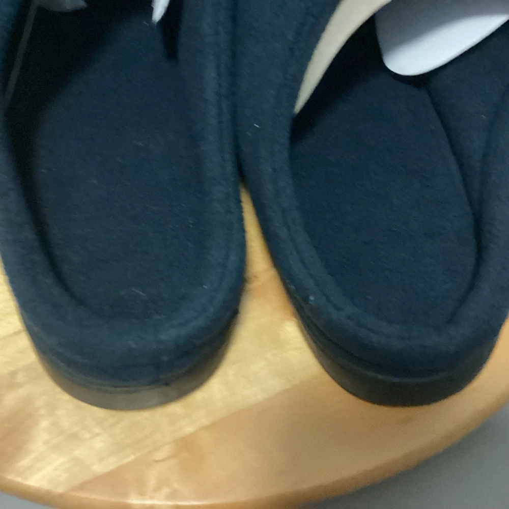 SIZE 12 LIKE NEW A comfortable and practical pair of men's slippers, perfect for relaxing at home. These slip-on style slippers feature a soft, plush fleece upper in a classic navy blue color. Designed for ease and warmth, they offer a relaxed fit and a durable sole for indoor wear. Ideal for cozy evenings, lazy weekends, or anytime you want to give your feet a break. Style: Slip-On Upper Material: Fleece Color: Blue/Black Department: Men Insole Material: Foam Lining Material: Fleece Outsole Material: Rubber Type: Slipper Heel Height: Flat (Under 1 in) Model: Kingsize Fleece Slip-On Keywords: mens slippers, fleece slippers, navy blue slippers, slip on slippers, house shoes, indoor slippers, comfortable slippers, Kingsize Menswear, mens footwear, cozy slippers, mens shoes, plush slippers, casual slippers Flaws: I will try and note any found flaws here or use a reddish/pink ruler to point out a flaw. Note: Colors may appear different in person due to lighting during photography. Item is PREOWNED Unless Otherwise Specified. Please See All Photos. I try to provide plenty of photos and information. Please see all photos For Details. I ship quick, typically within 24 hours, M-F. Holidays and Weekends Might Affect Shipping. Thank you for your interest. B13