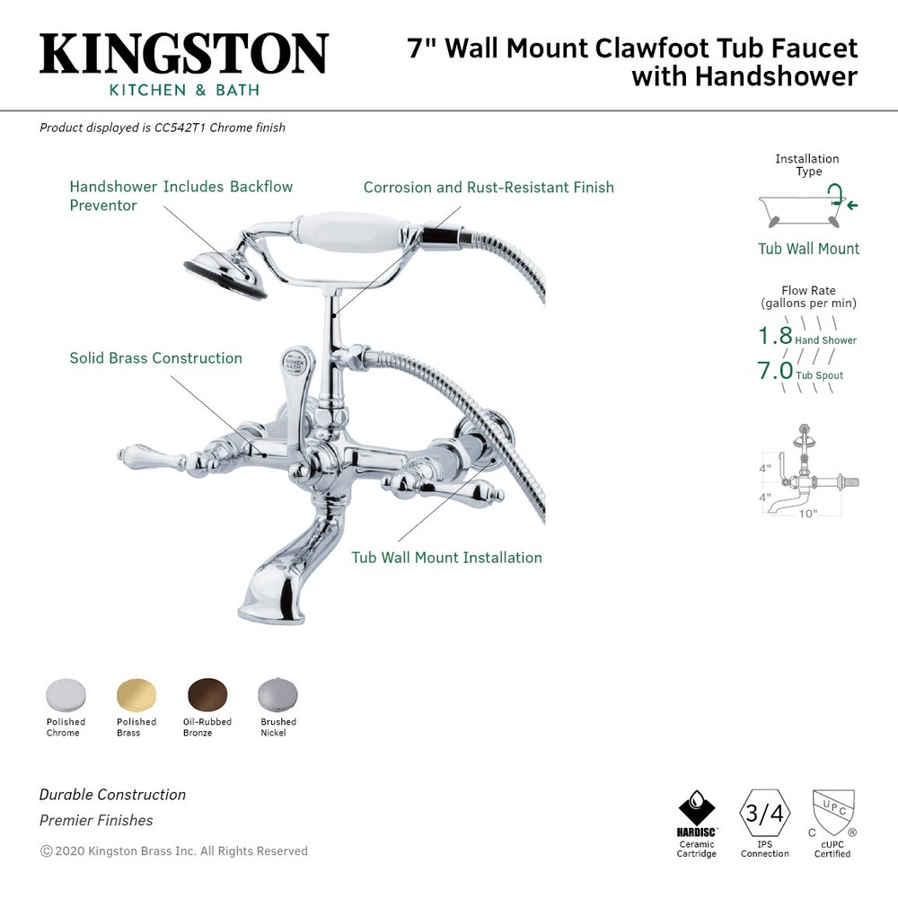 Powered by Frooition Top Products Kitchen Bathroom Lighting Fans Hardware Decor & Organization Kingston Brass CC541T Vintage Wall Mounted Tub Filler with Built-In Diverter - Includes Hand Shower Overview Item Description Kingston Brass CC541T Features: Covered under Kingston Brass's 10 year limited warranty Constructed of brass Brass is highly resistant to corrosion and an excellent choice to withstand high temperatures Coordinates with products from the Vintage line Includes hand shower - handy for rinsing down the tub or just rinsing off after a bath Bridge wall mounted installation - 2 hole faucet with 7" faucet centers 3 handles included with faucet Faucet includes ceramic disc valve Integrated diverter included – located on the tub spout Complies with ADA standards Kingston Brass CC541T Specifications: Height: 12-1/8" (bottom to top of faucet) Spout Height: 10" (deck to spout outlet) Spout Reach: 10" (center of faucet body to center of spout outlet horizontally) Flow Rate: 7 gallons-per-minute Hand Shower Flow Rate: 1.8 gallons-per-minute Hose Length: 59" (deck to spout outlet) Number of Faucet Holes: 2 (minimum number of holes required for installation) Faucet Centers: 7" (center-to-center distance between handle installation holes) Why Choose BuildInc? OUR PROMISE TO YOU About Us At Build, we promise to provide the best selection we can, most competitive pricing, and unmatched customer service. Our store has quality home improvement products from trusted manufacturers like Moen, American Standard, Delta, Kraus, Kichler, Progress Lighting, Schlage, Kwikset, Baldwin, Broan, NuTone, Air King, and Rev-A-Shelf. With over 200,000 home improvement products for you to choose from, we have just what you need to get your project done. Fast & Free Shipping We promise to make it our priority to get you your items as fast as we can. We ship from 440 warehouses around the country, ensuring that your product will get to you as soon as possible. We know you're eager to get your hands on your new purchase, we would be too. As a bonus, most items ship for free. Returns We are happy to accept returns of unused or defective items for a refund within 30 days from the date of delivery. For returns outside 30 days, please contact our Customer Service team to go over our options. For full details, please view the Shipping and Payments tab above. To initiate a return simply go to the eBay Returns Portal and submit a return request. We ask that all items be returned with all original components via a traceable method. Once your return is received and processed, we will quickly get your refund or replacement issued. If for any reason you are unsatisfied with your purchase or for product or warranty questions, please contact Customer Service team for assistance. More Items! View more great items PROFLO PFSCPT White Soft Supply Cover $23.95 American Standard M962643 Chrome Replacement Hose For The 4332-300 $45.14 PROFLO PF9812 Ultra High Efficiency 0.8 GPM Two-Piece Toilet Tank Only - White $90.85 PROFLO PF42813 6" Brass Cover With 3" - 4" Adjustable Cleanout $57.04 About Us | Shipping | Returns | Contact Us | FAQ | Collections | Special Offers! Powered by Frooition Frooition Frooition | No-js Template | eBay design, eBay store design, eBay shop design, eBay template design, eBay listing design (ver:froo_no_js) This listing is currently undergoing maintenance, we apologize for any inconvenience caused.