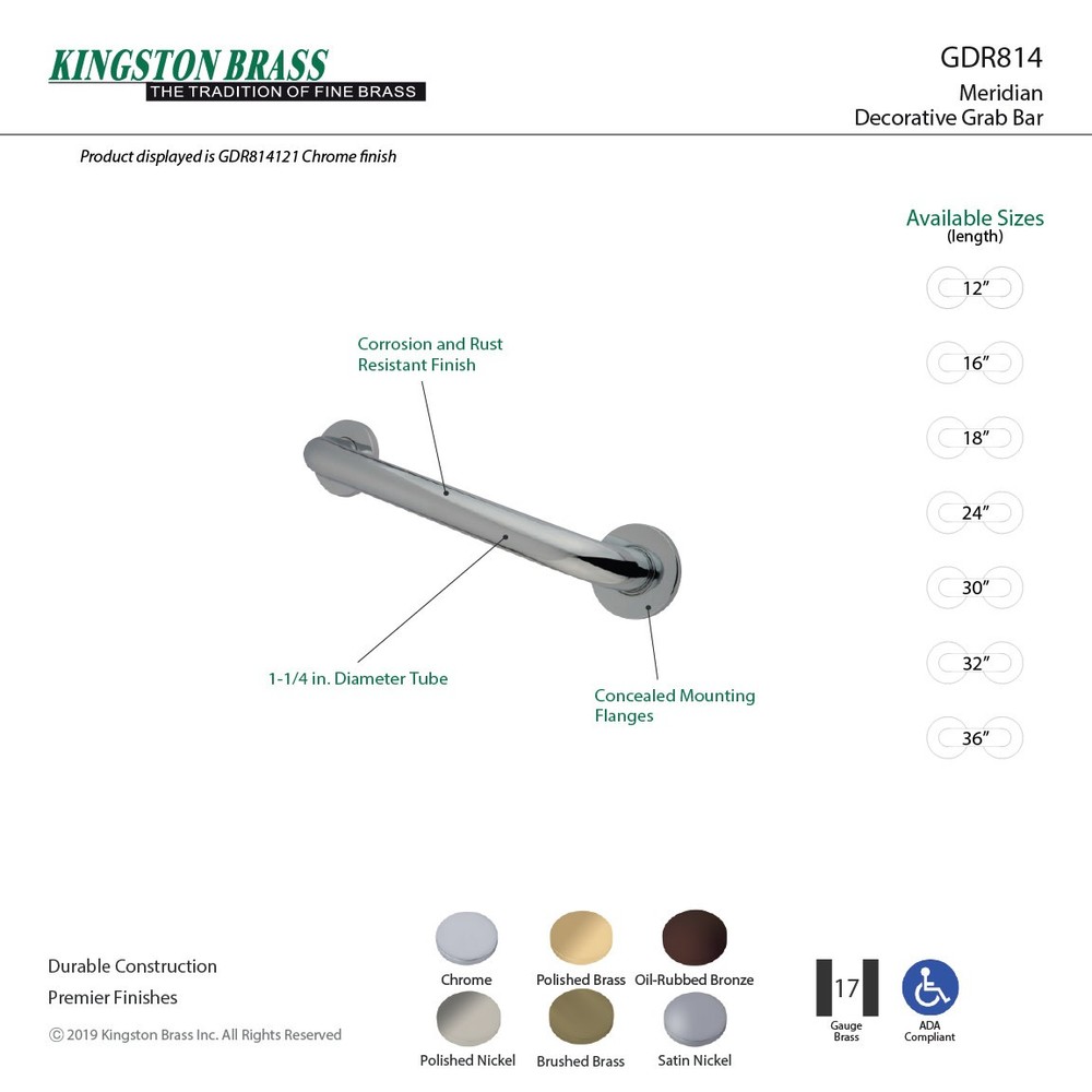 Powered by Frooition Top Products Kitchen Bathroom Lighting Fans Hardware Decor & Organization Kingston Brass GDR81424 Silver Sage 24" Grab Bar Overview Item Description Kingston Brass grab bars are beautifully designed to offer not only an aid in preventing falls, but unique style. Useful for all ages, these can be located in showers, near toilets, or in any customized location. This particular grab bar resourcefully provides support as it enhances a contemporary style. Kingston Brass GDR81424 Features: Covered under Kingston Brass's 1 year limited warranty Constructed of brass All hardware required for installation of grab bar is included Coordinates with products from the Silver Sage line seamlessly Complies with ADA standards Kingston Brass GDR81424 Specifications: Overall Width: 26-3/4" (from left to right of product) Center to Center: 26-3/4" (distance between installation centers) Projection (Depth): 2-7/8" (wall to edge of product) Why Choose BuildInc? OUR PROMISE TO YOU About Us At Build, we promise to provide the best selection we can, most competitive pricing, and unmatched customer service. Our store has quality home improvement products from trusted manufacturers like Moen, American Standard, Delta, Kraus, Kichler, Progress Lighting, Schlage, Kwikset, Baldwin, Broan, NuTone, Air King, and Rev-A-Shelf. With over 200,000 home improvement products for you to choose from, we have just what you need to get your project done. Fast & Free Shipping We promise to make it our priority to get you your items as fast as we can. We ship from 440 warehouses around the country, ensuring that your product will get to you as soon as possible. We know you're eager to get your hands on your new purchase, we would be too. As a bonus, most items ship for free. Returns We are happy to accept returns of unused or defective items for a refund within 30 days from the date of delivery. For returns outside 30 days, please contact our Customer Service team to go over our options. For full details, please view the Shipping and Payments tab above. To initiate a return simply go to the eBay Returns Portal and submit a return request. We ask that all items be returned with all original components via a traceable method. Once your return is received and processed, we will quickly get your refund or replacement issued. If for any reason you are unsatisfied with your purchase or for product or warranty questions, please contact Customer Service team for assistance. More Items! View more great items Alno C214 Crystal Series 1.25" Luxury Solid Brass Cabinet Knob $43.96 Speakman VS-117 Chrome In-Line Vacuum Breaker With 1/2" Inlet & Outlet $57.98 Grohe 40 508 1 Chrome Essentials Cube Wall Mounted Soap Dish $63.99 Hinkley Lighting H4885 Bronze Plantation 5-Light 1 Tier Chandelier $1,040.48 About Us | Shipping | Returns | Contact Us | FAQ | Collections | Special Offers! Powered by Frooition Frooition Frooition | No-js Template | eBay design, eBay store design, eBay shop design, eBay template design, eBay listing design (ver:froo_no_js) This listing is currently undergoing maintenance, we apologize for any inconvenience caused.