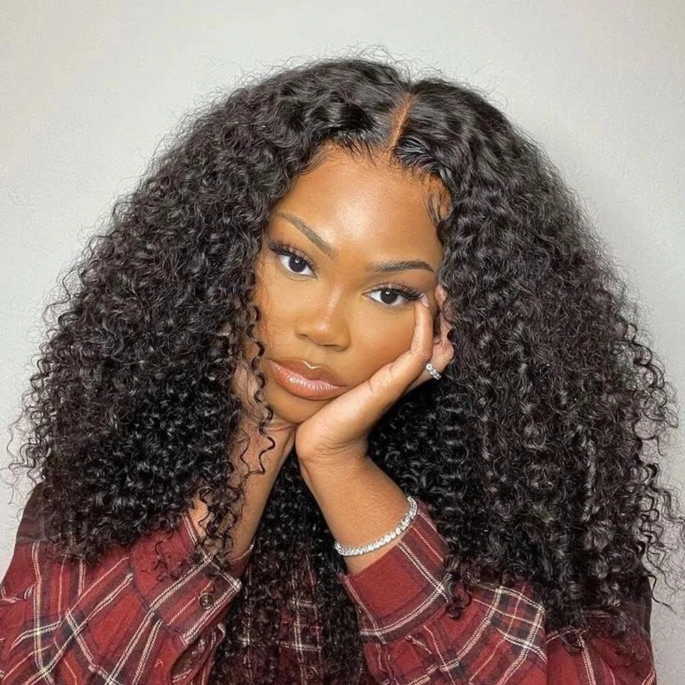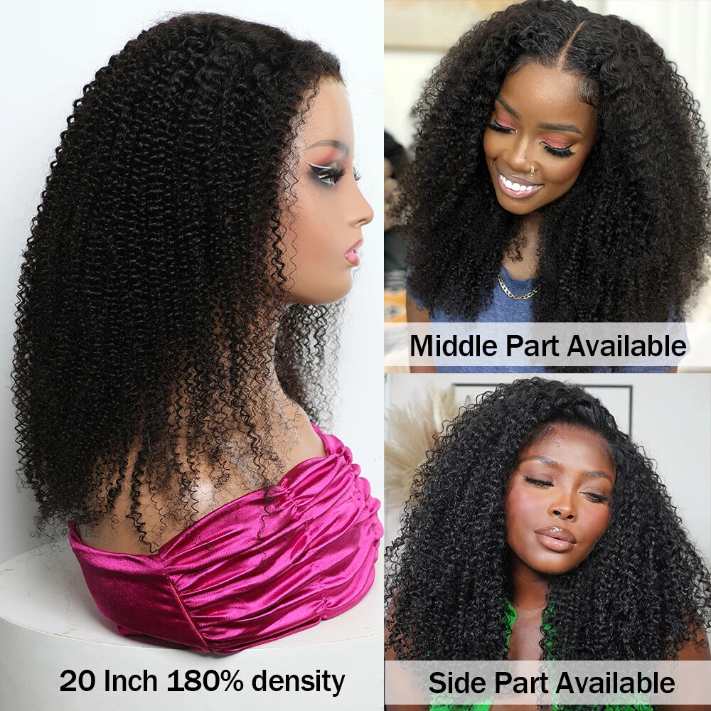 300% Kinky Curly Transparent Lace Wig Pre Plucked Glueless Human Hair