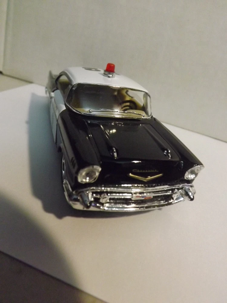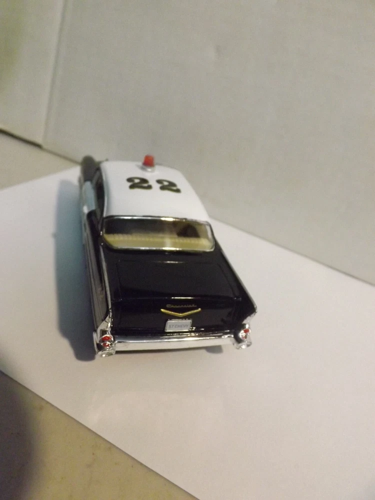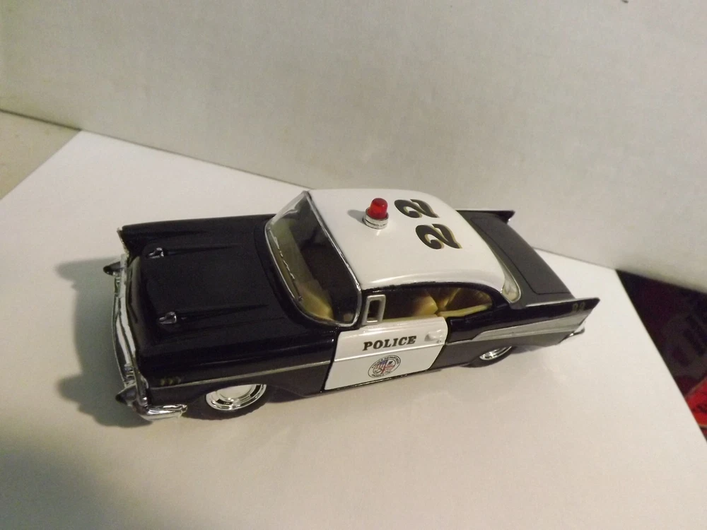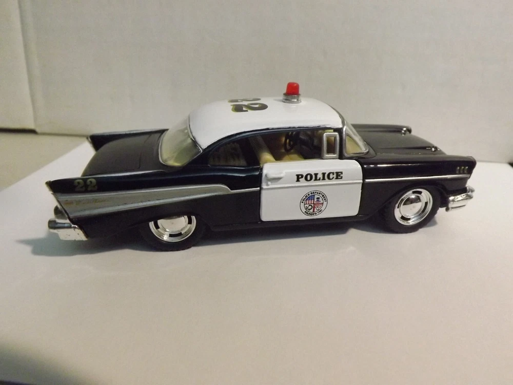 This auction is for a Kinsmart, Black & White, 1957 Chevrolet Bel Air Police Car, 1/40 Scale , Car is Mint , Winning bidder pays $5.50 for Shipping and Handling with Delivery Confirmation in the U.S.A. Will combine shipping. ,