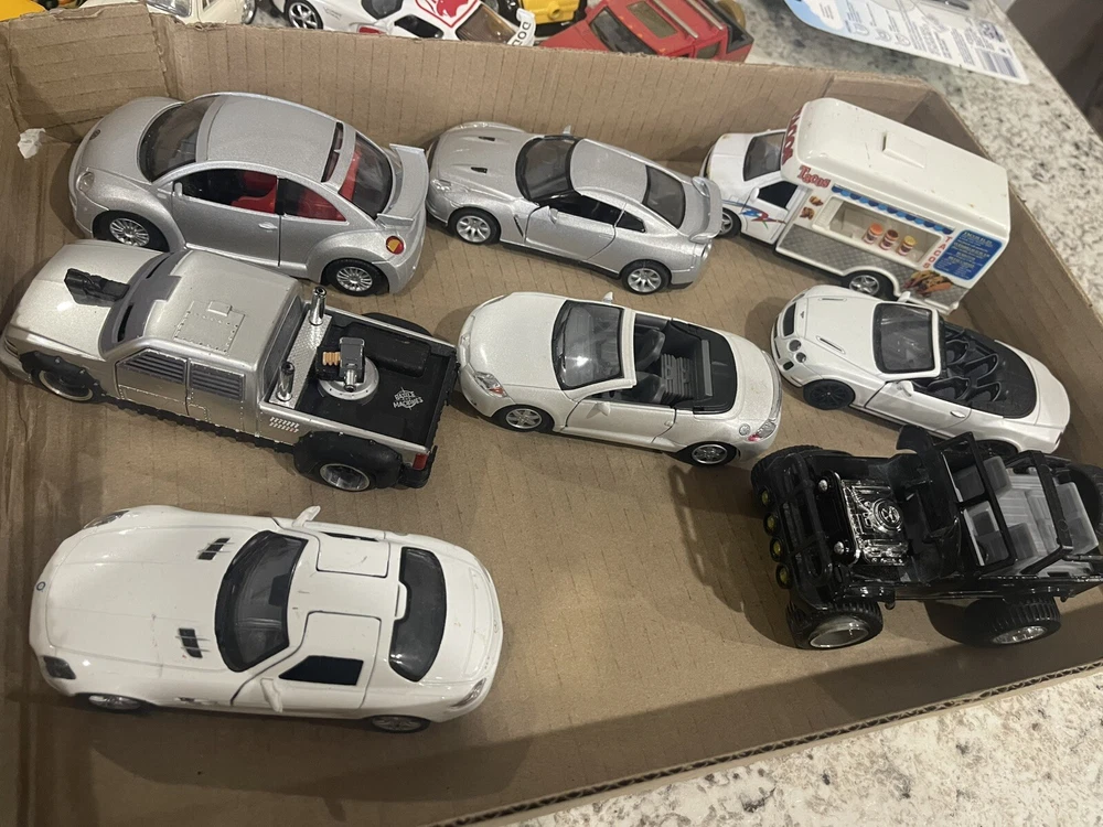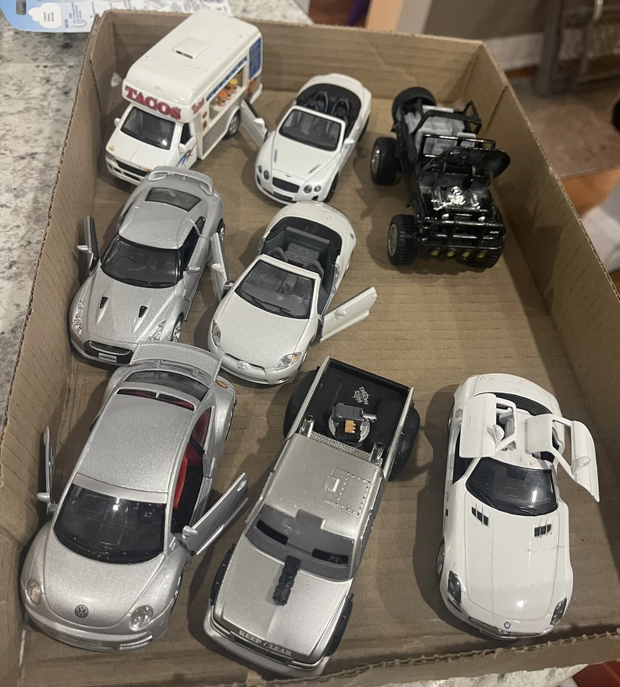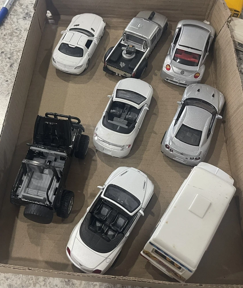 This lot of 7 vintage diecast cars from Kinsmart features a variety of multi-colored vehicles, The cars are made of durable material and have a pullback action. They are suitable for boys and girls of all ages, from 3 years old and up. Each car is a mixed scale and has not been customized. The collection includes cars from the Cars character family and is perfect for collectors and toy enthusiasts alike. Add these Kinsmart Welly pullback diecast cars to your collection today!