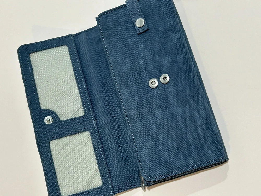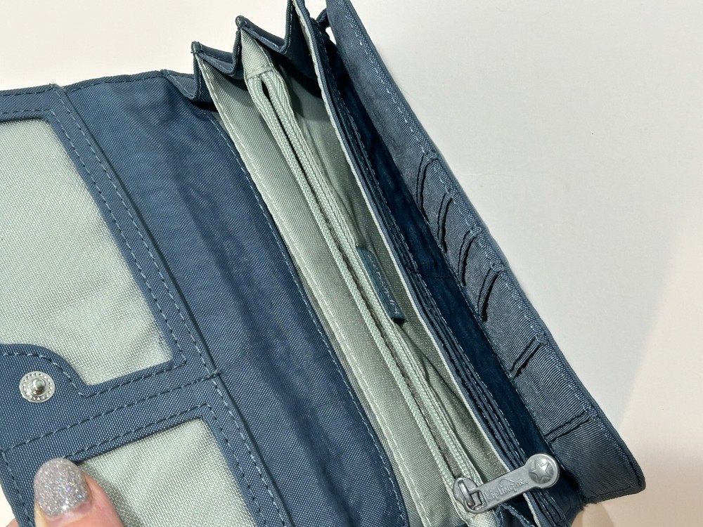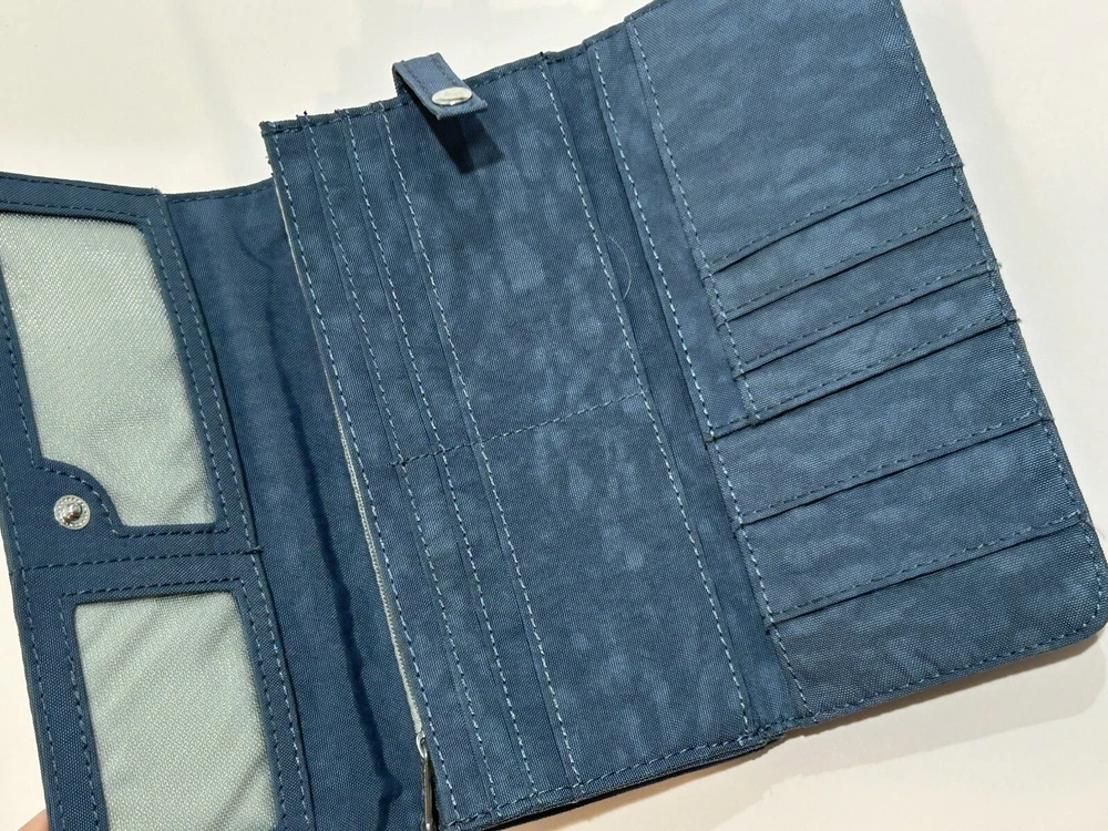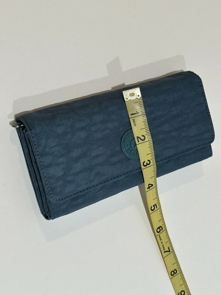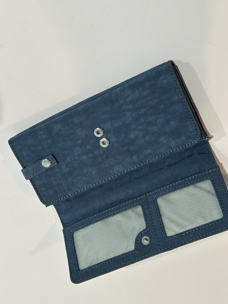 Accents: Logo Material: Nylon Theme: Money Handmade: No Size: One Size Type: Envelope Wallet Pattern: Solid Vintage: No Color: Blue Character: No Style: Bifold Features: Credit Card, Checkbook, Folding, RFID Blocking Country/Region of Manufacture: Unknown MPN: 55247305 Fabric Type: Rayon Department: Women Brand: Kipling