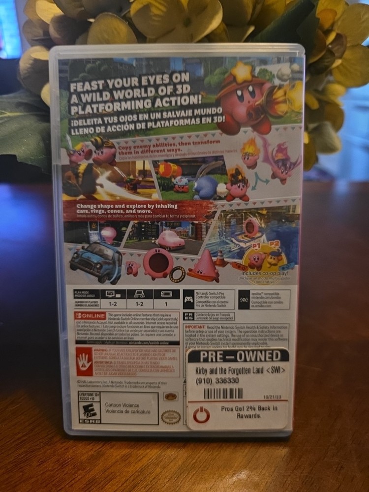 "Kirby and the Forgotten Land" is an action and adventure video game set to be released in 2022 for the Nintendo Switch platform. Published by Nintendo, the game is rated E10+ (Everyone 10+) and offers multiplayer features. The product comes with a manufacturer warranty of 1 month, making it a safe choice for gamers looking for an exciting and immersive gaming experience. With its captivating storyline and gameplay, "Kirby and the Forgotten Land" is sure to delight fans of the Kirby franchise and newcomers alike.