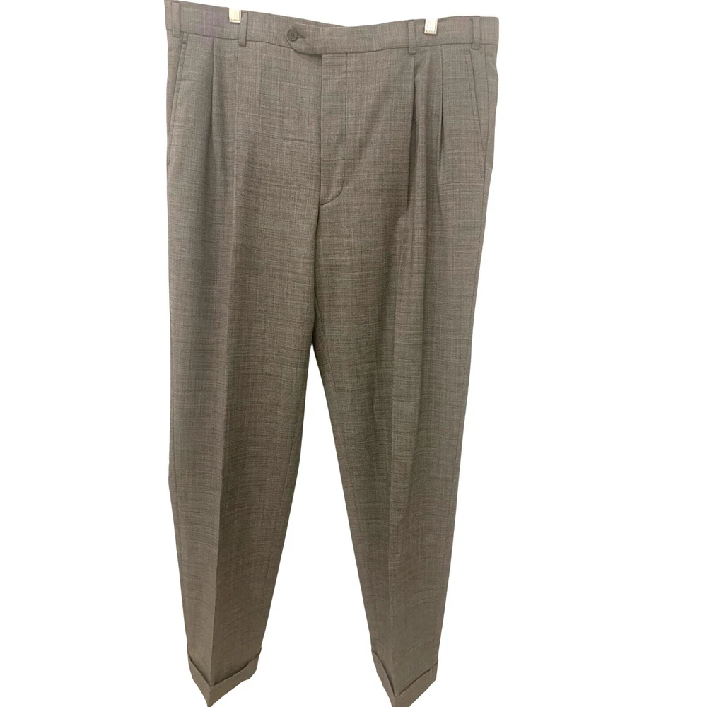 KIRKLAND SIGNATURE Pants 38x32 Gray Lined Cuffed All Wool Made in Italy Dress Trousers Business Waist 38 in Inseam 32 in Rise 12 in Dry Clean Excellent Preowned Condition 100% Pure Wool
