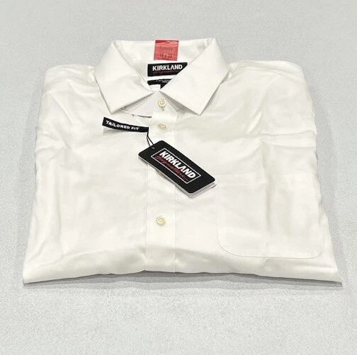 Kirkland Signature Men's Tailored Fit Dress Shirt Size: 16-33 Color: White Content: 100% Pima Cotton